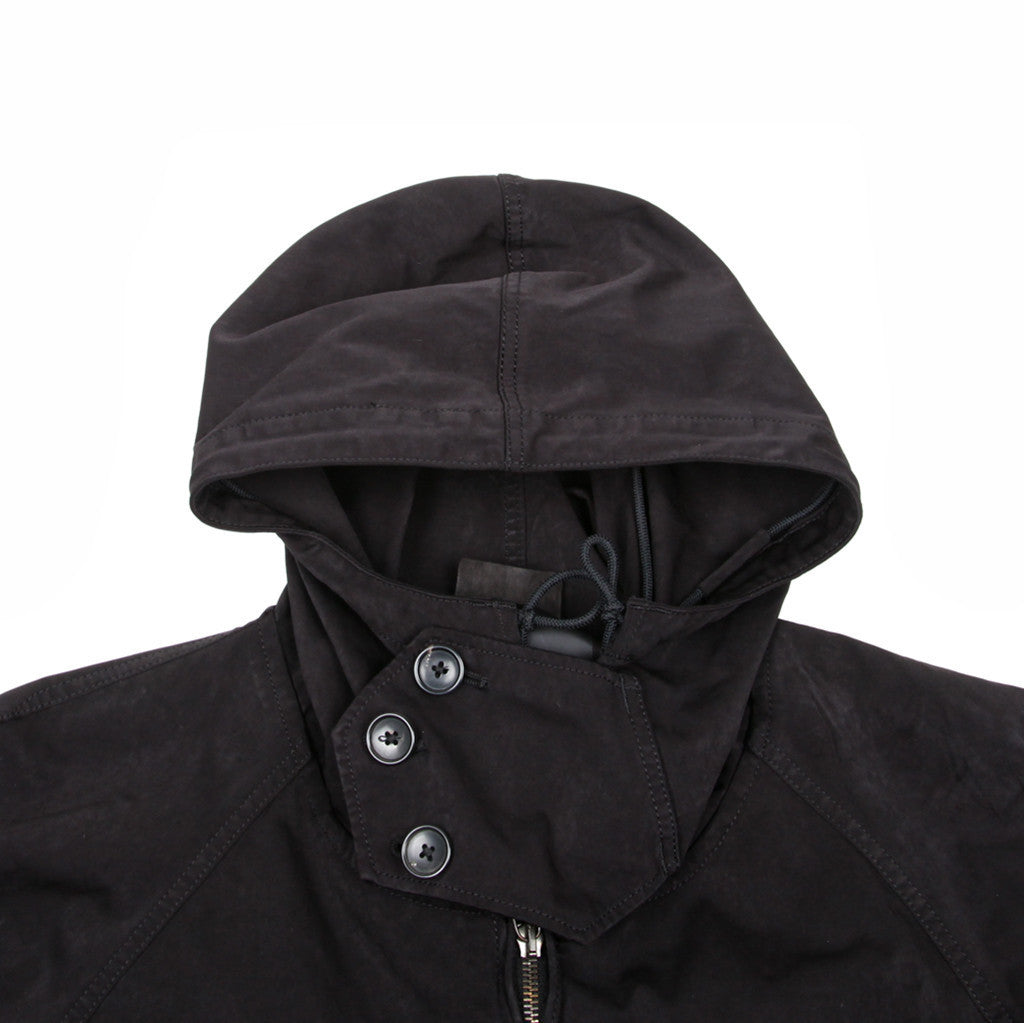 This zip front Anorak has a button closure storm flap at the collar for when you really need to bundle up. Also features two waist level hand warmer slant pockets and a large back pocket with side access. Drawstring at the bottom hem to adjust the fit and also drawstring in the hood. Jacket and hood liners can all be added to this bad boy depending on weather conditions.
