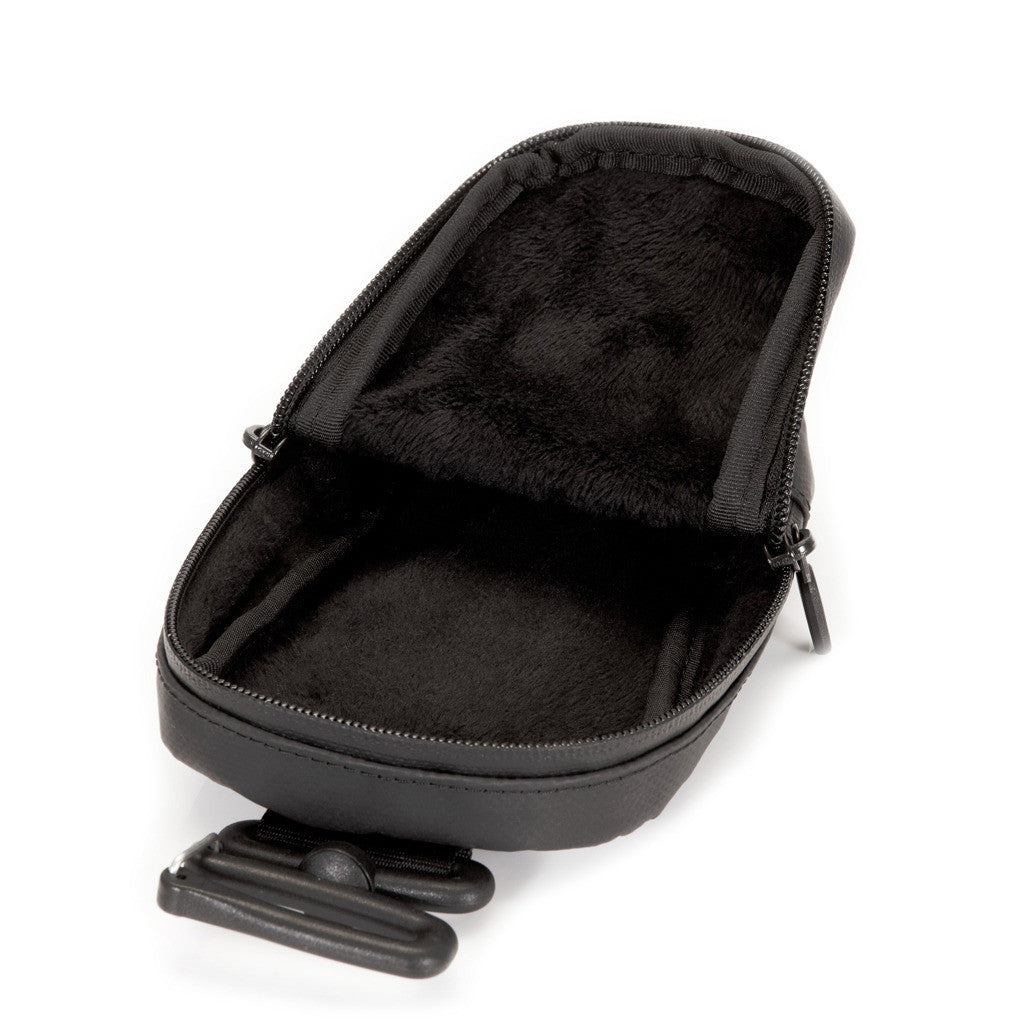 Water resistant, soft sided accessories pouch made of a PU coated tarpalon type material with waterproof zipper and multiple attachment capabilities. Lined in a very soft, fuzzy micro fleece to protect your camera, glasses or whatever valuables you choose to stash in it.