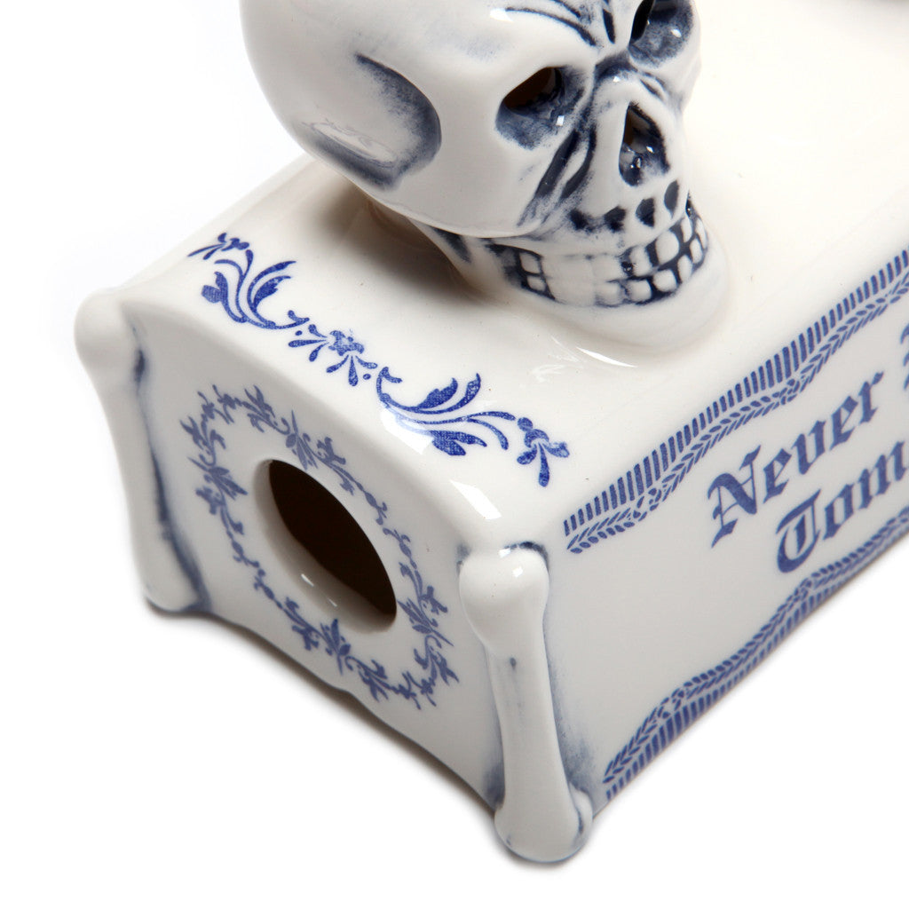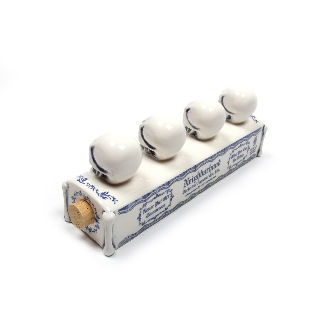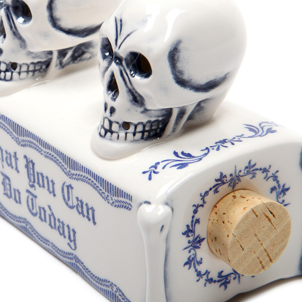 The Pottery Series are objects that drop original ideas onto the historical background of Made in Occupied Japan pottery items that were exported while Japan was occupied under the US after WWII. The BOOZE.SKULL which was created when the series first came out, is available once again.