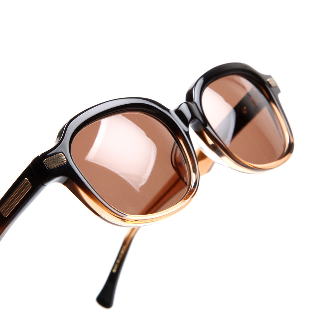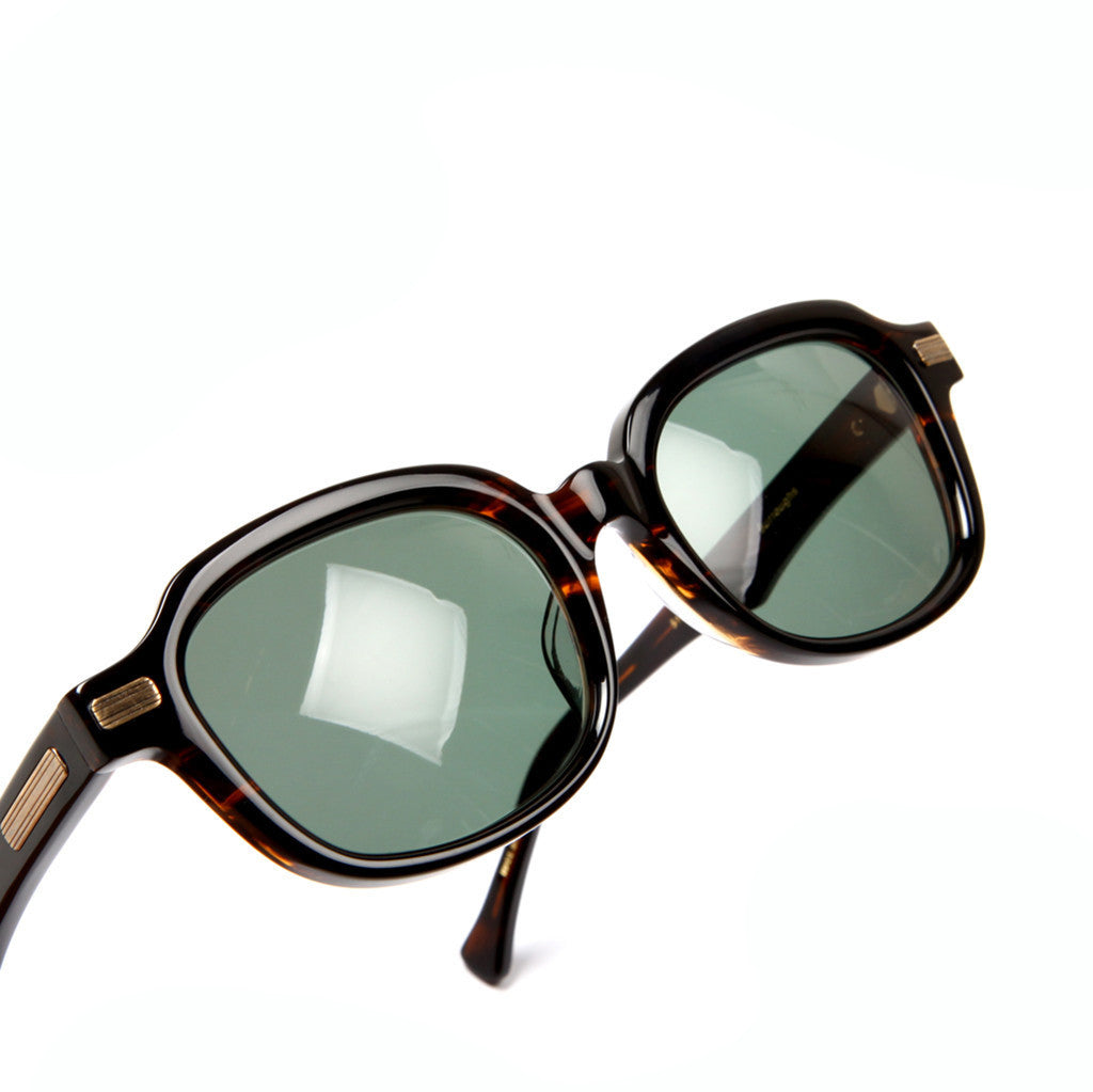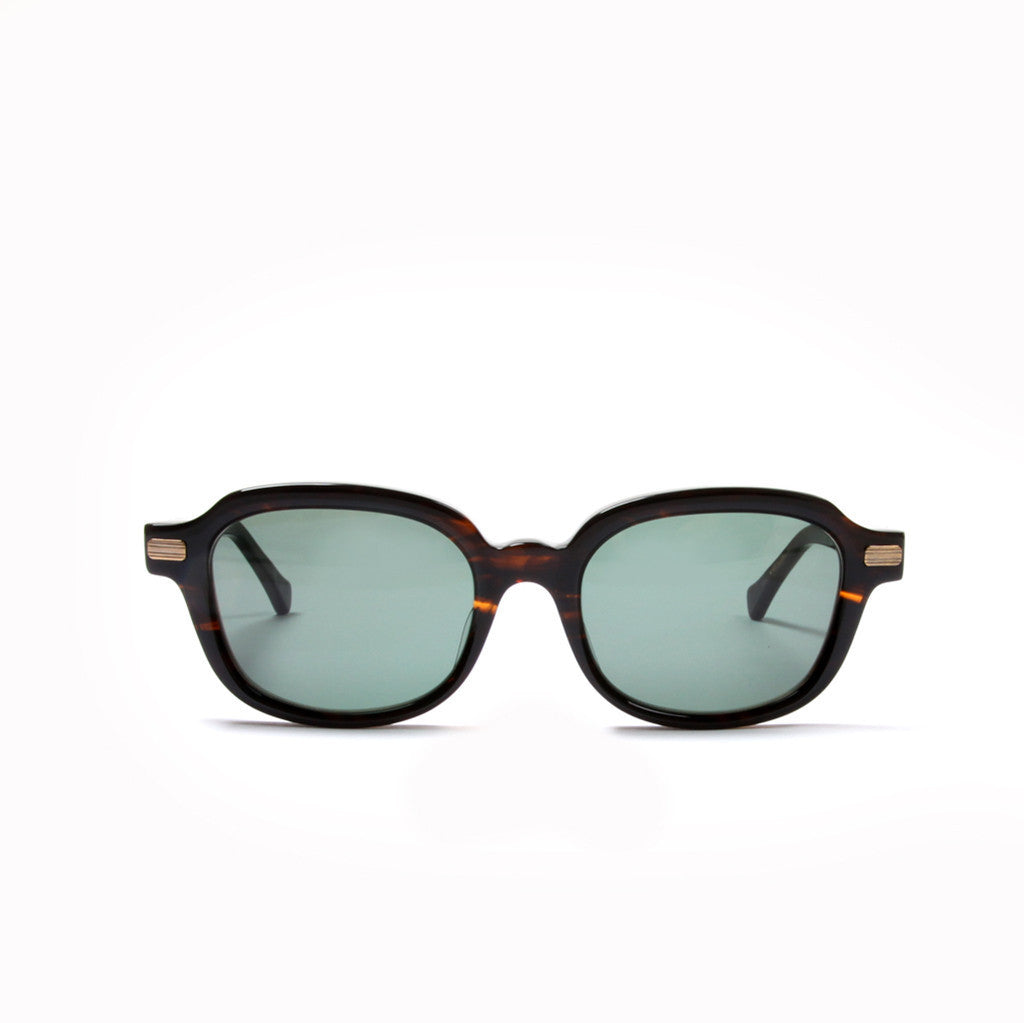 All frames are 100% hand-drawn style and original. All acetates are original cellulose (plant) based with original long-diamond-tooled core wires and original arrow-shaped hinge design and constructed using an old school star-nut configuration to adjust and hold hinge tension, making it harder to loosen. The beauty marks accenting the front connections and side temple appear striated and are finished in antique plating then hand polished to leave a hairline finish.