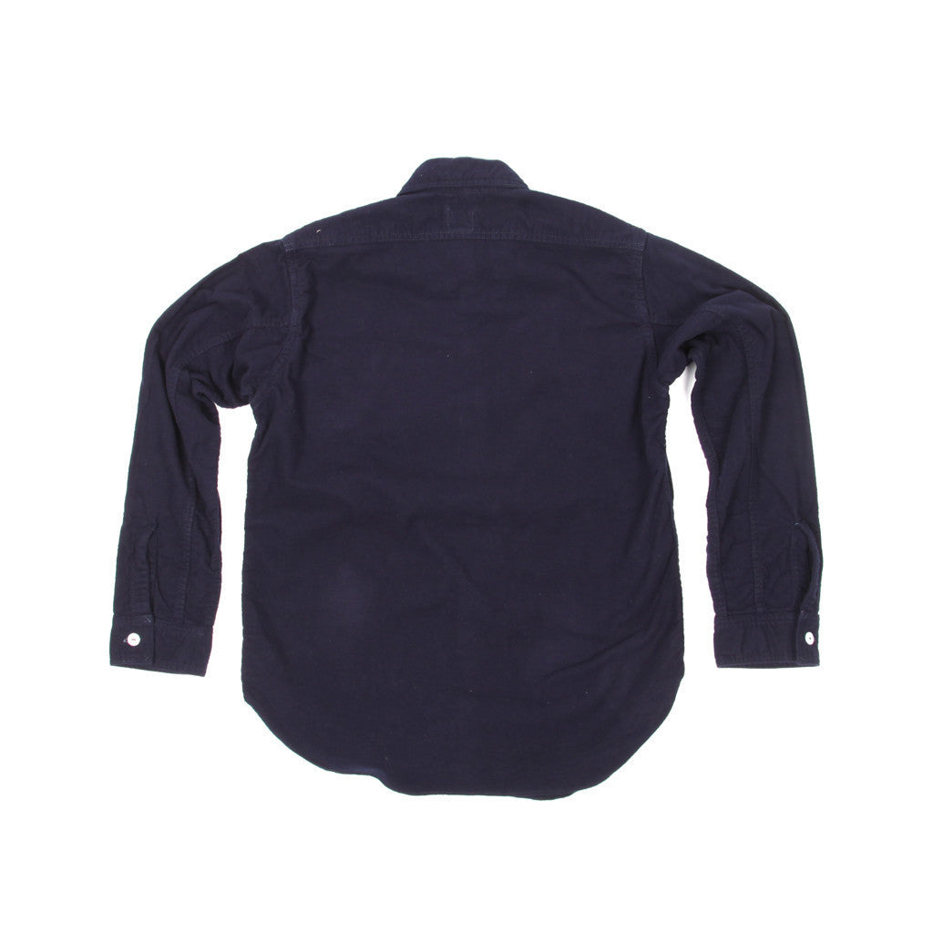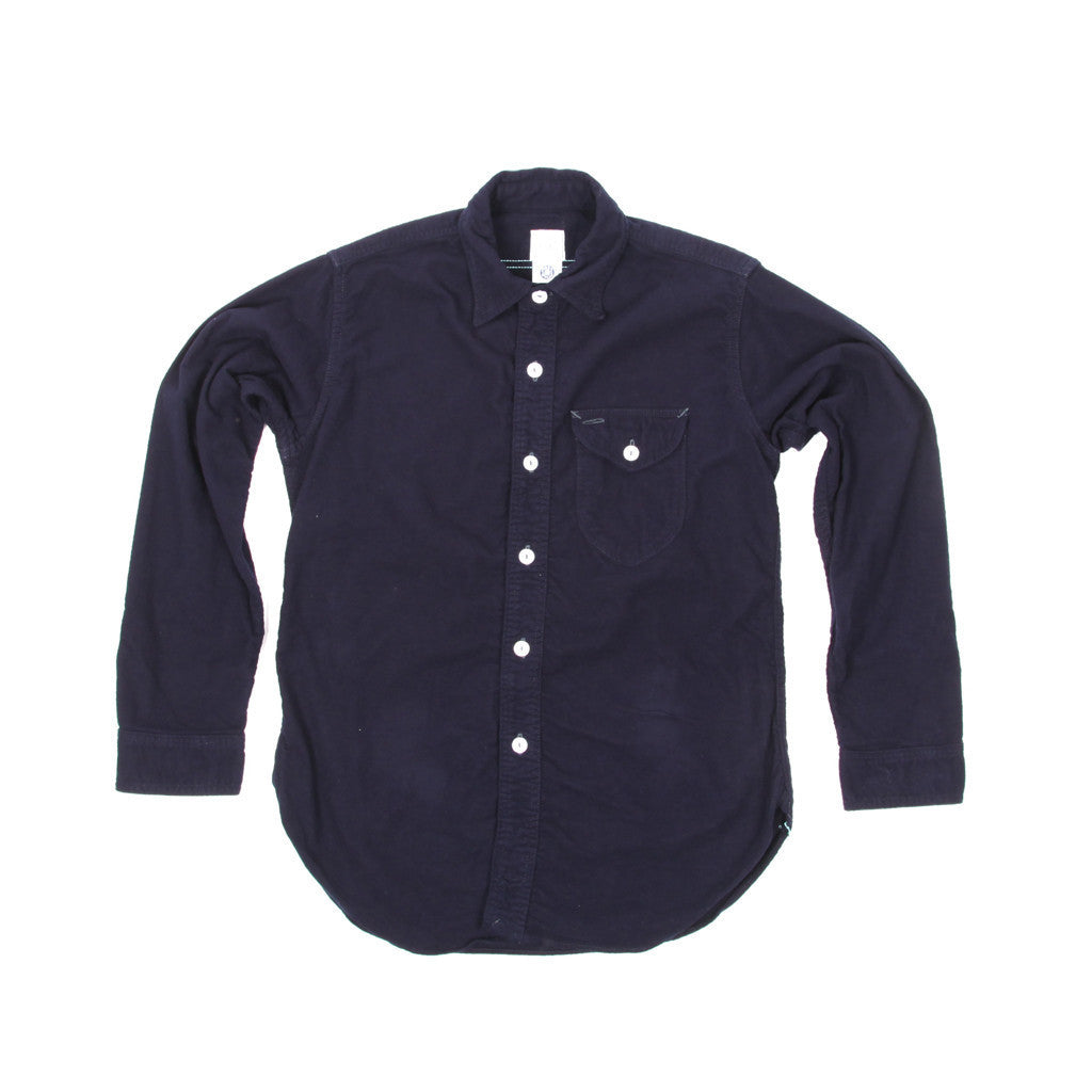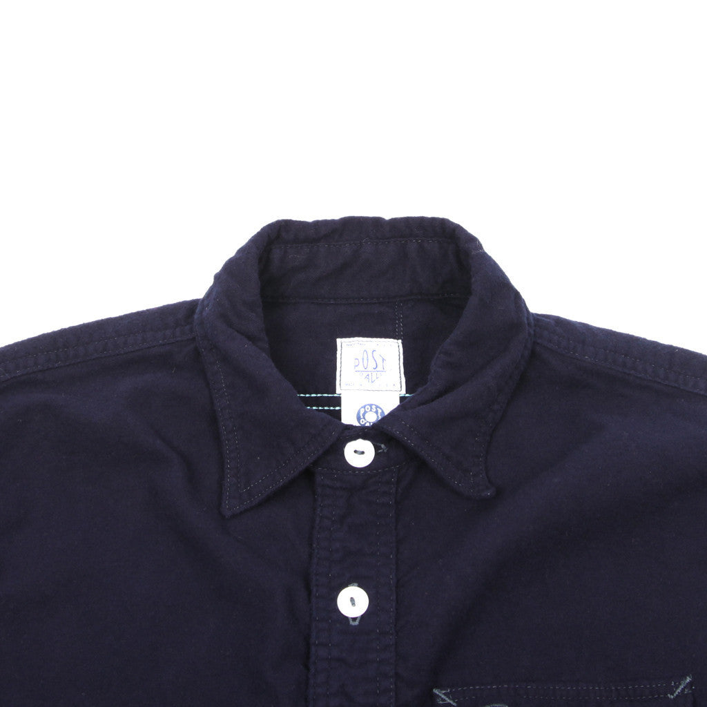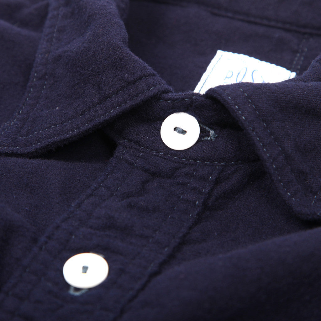 Solid Navy long sleeve flannel shirt with single chest flap pocket.