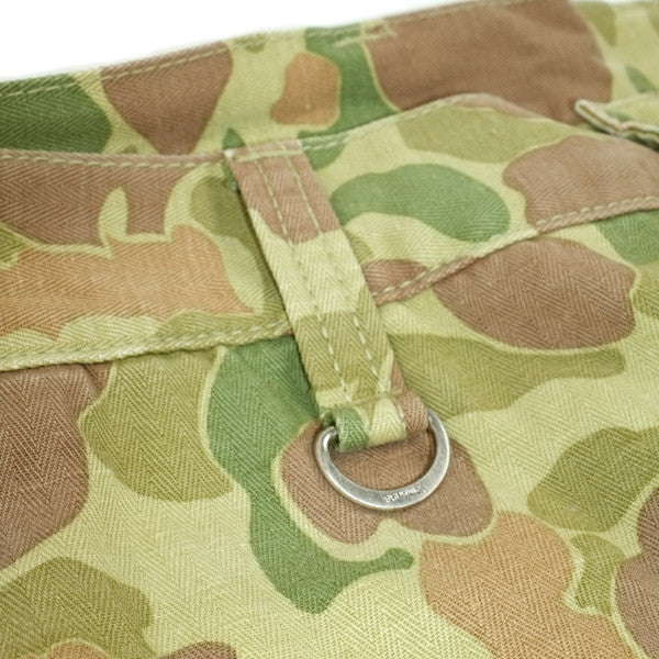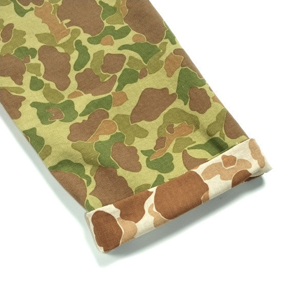 A staple within the brand. A reverse HBT camouflage slim fitting pant with a zip fly.
