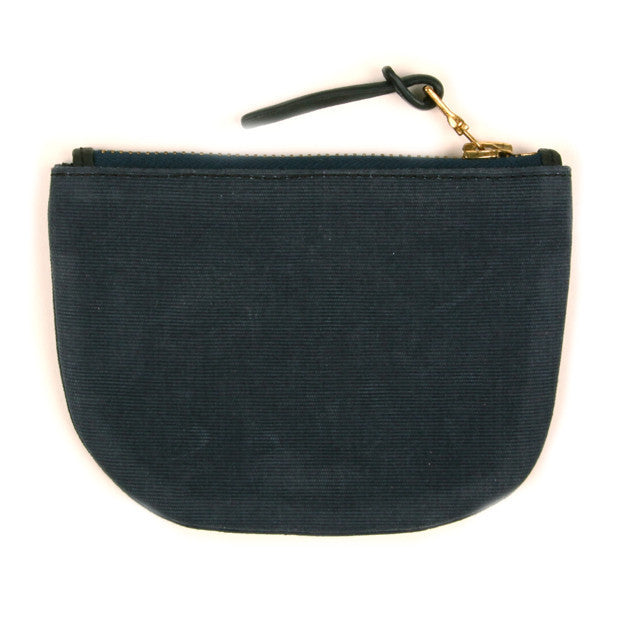 Canvas micro corduroy pouch with brass RiRi zipped and leather pull tab.