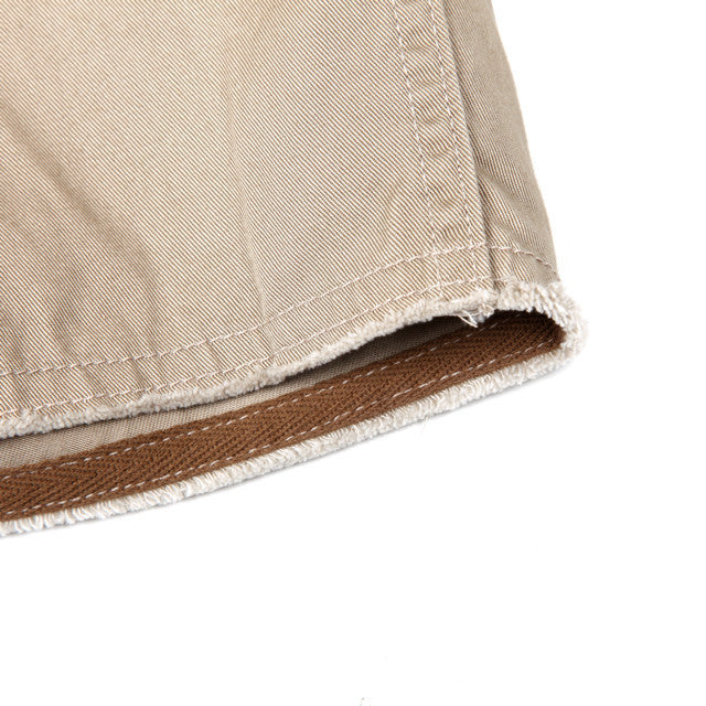 The short version of a chino pants, cut-off so you get the ruffling at the end. GIZA cotton give its a very soft hand feel. Lightweight and perfect for the summer.