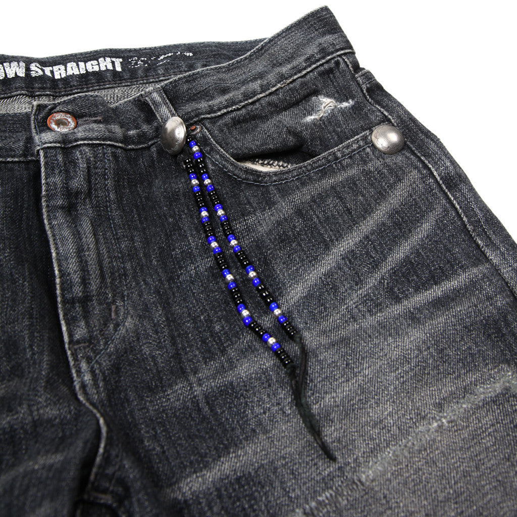 Slim fit...Level 4 Savage. An update to last seasons Beads Savage but this season you they gave us more conchos around each pocket and the beads are now a strap that hangs from the front pocket. You can actually remove the beads and put them on other pants as well. Patching, restitching, and distressing all over! These are the NARROW fit so they are slim.