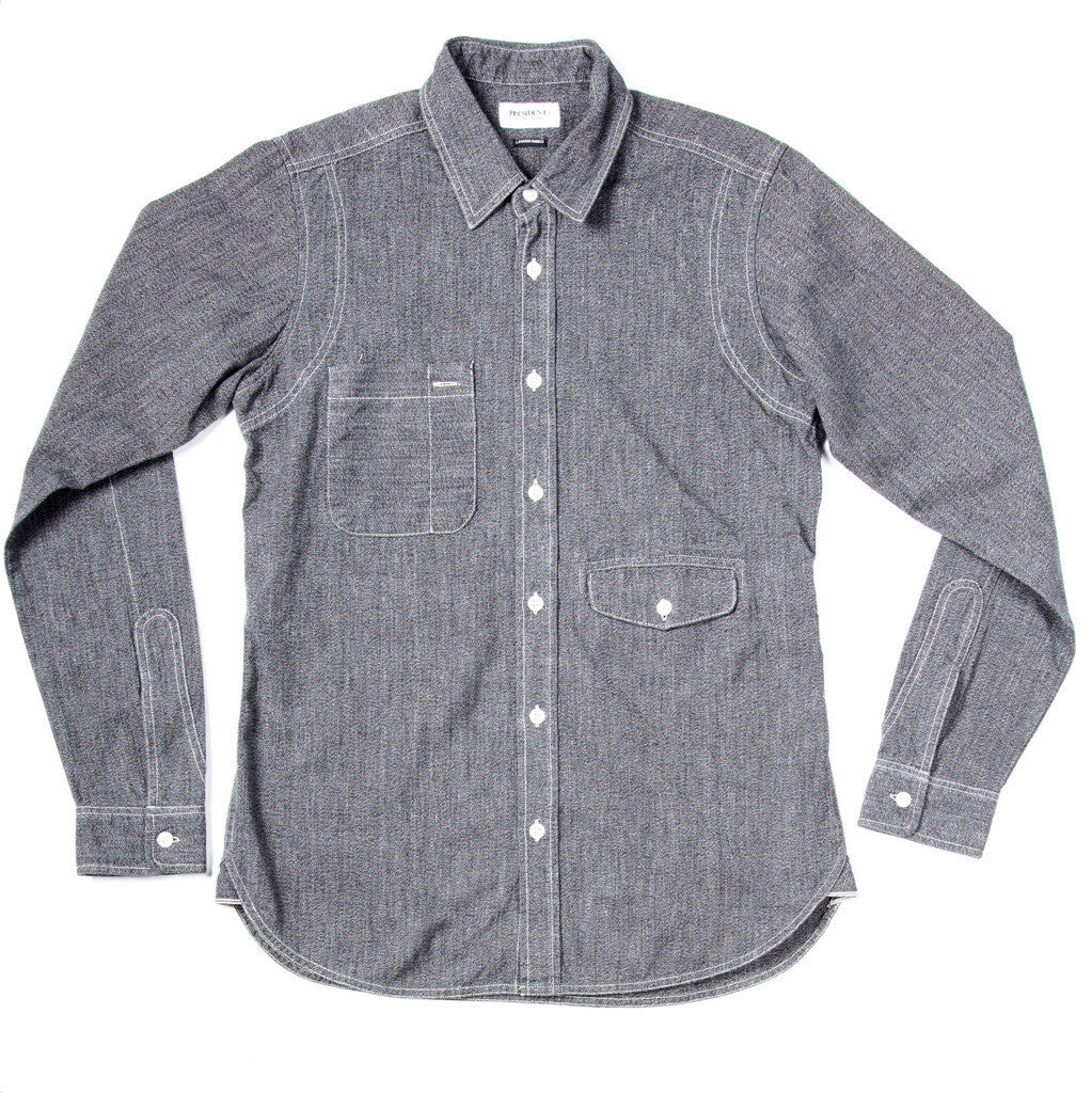 This is a twisted yarn "Salt n Pepper" chambray shirt. It is made from Japanese selvedge chambray fabric. Tons of subtle details...Definitely not your average chambray shirt! Features include a right side patch pocket on the chest with a pen pocket. Also, a welt flap pocket on the lower left side of the front. Selvedge gusset detail and an Interesting yoke detail.