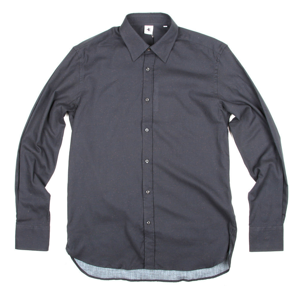 Black brushed cotton twill shirt with red flecks. Point collar and standard placket ..Real subtle flare!