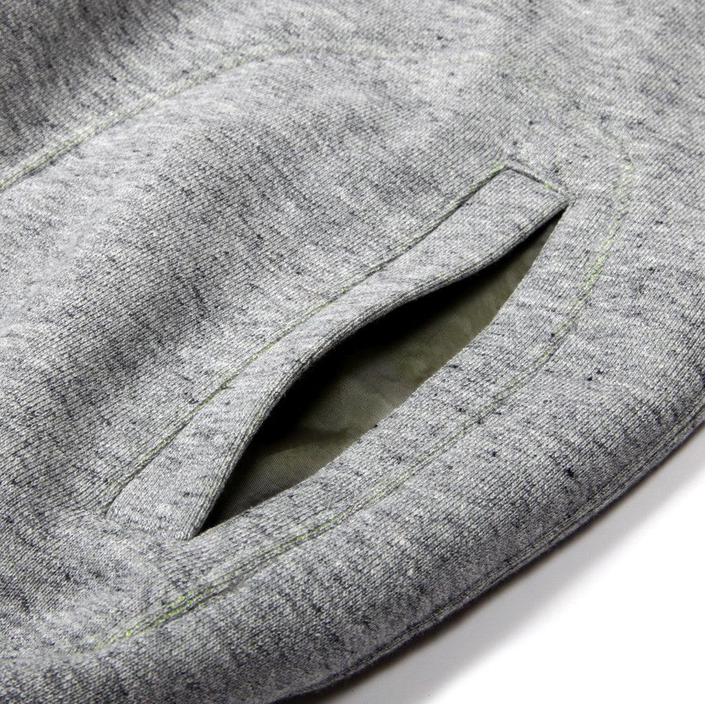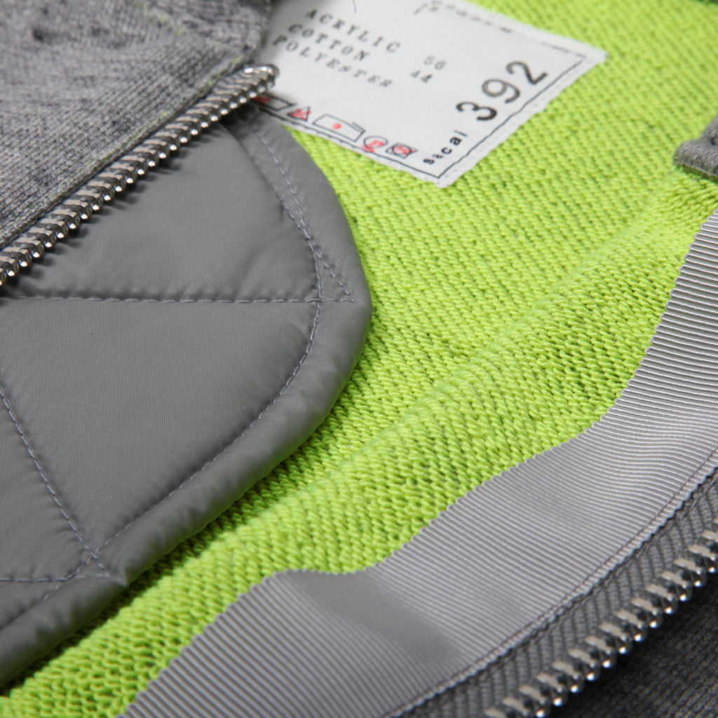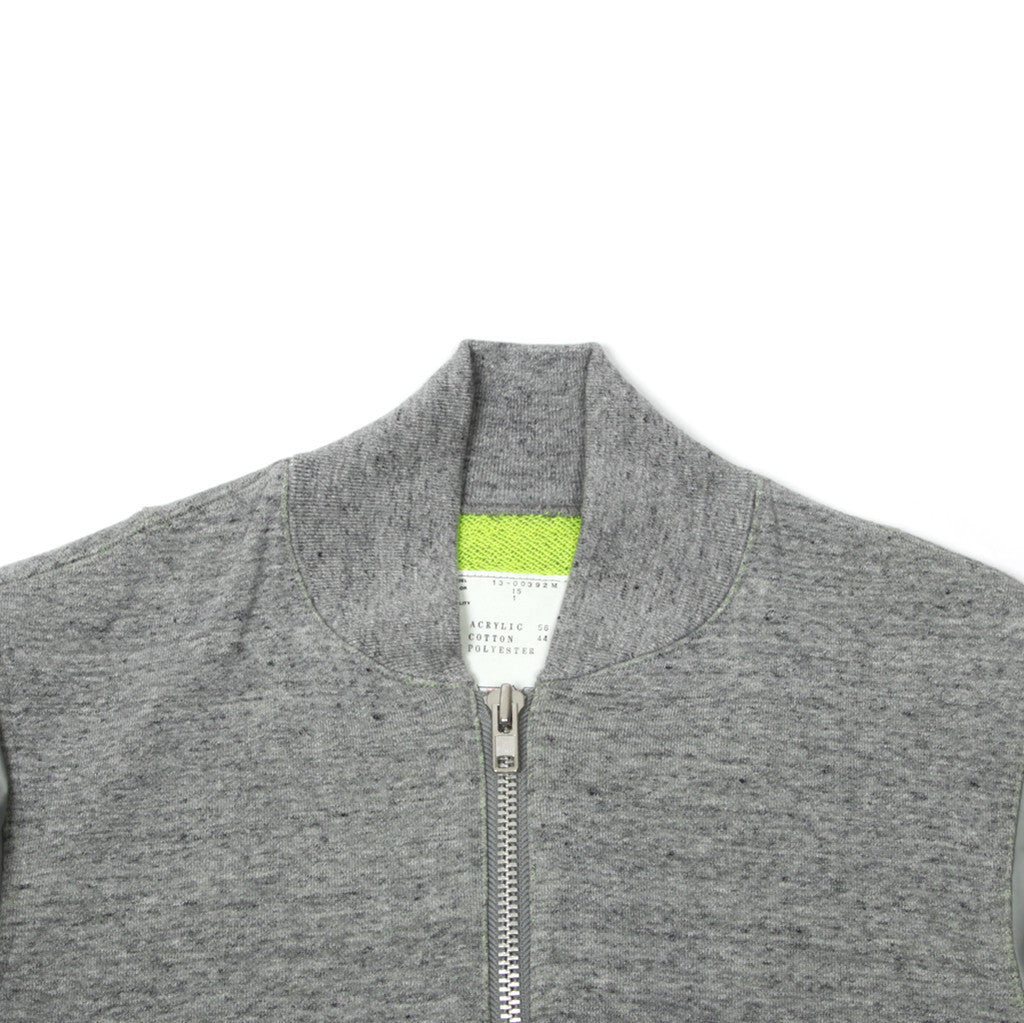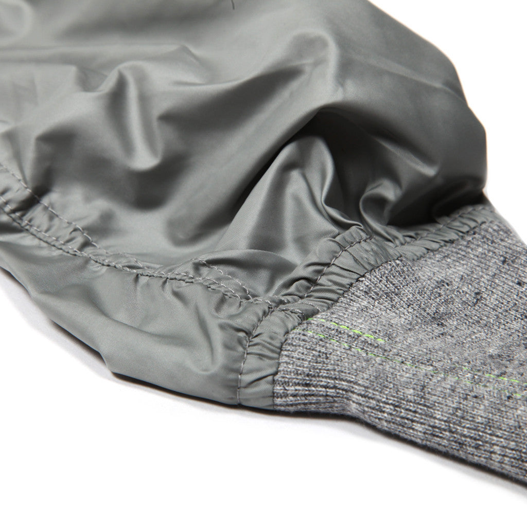 Casual MA-1 bomber with a French terry body with contrast inside color and nylon sleeves.