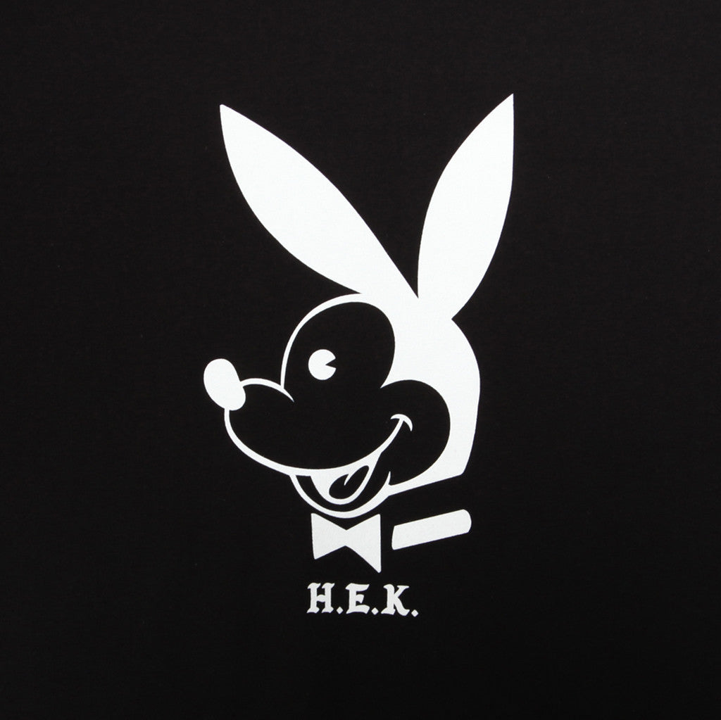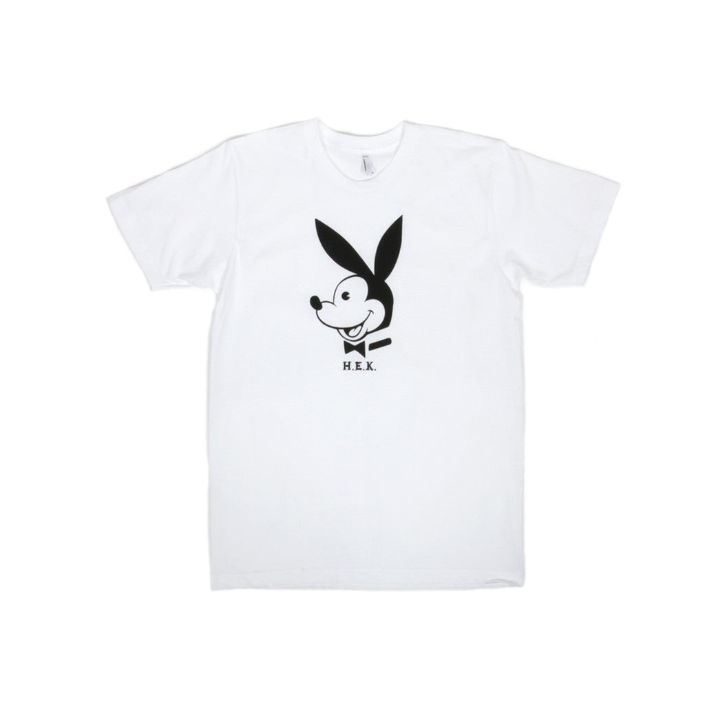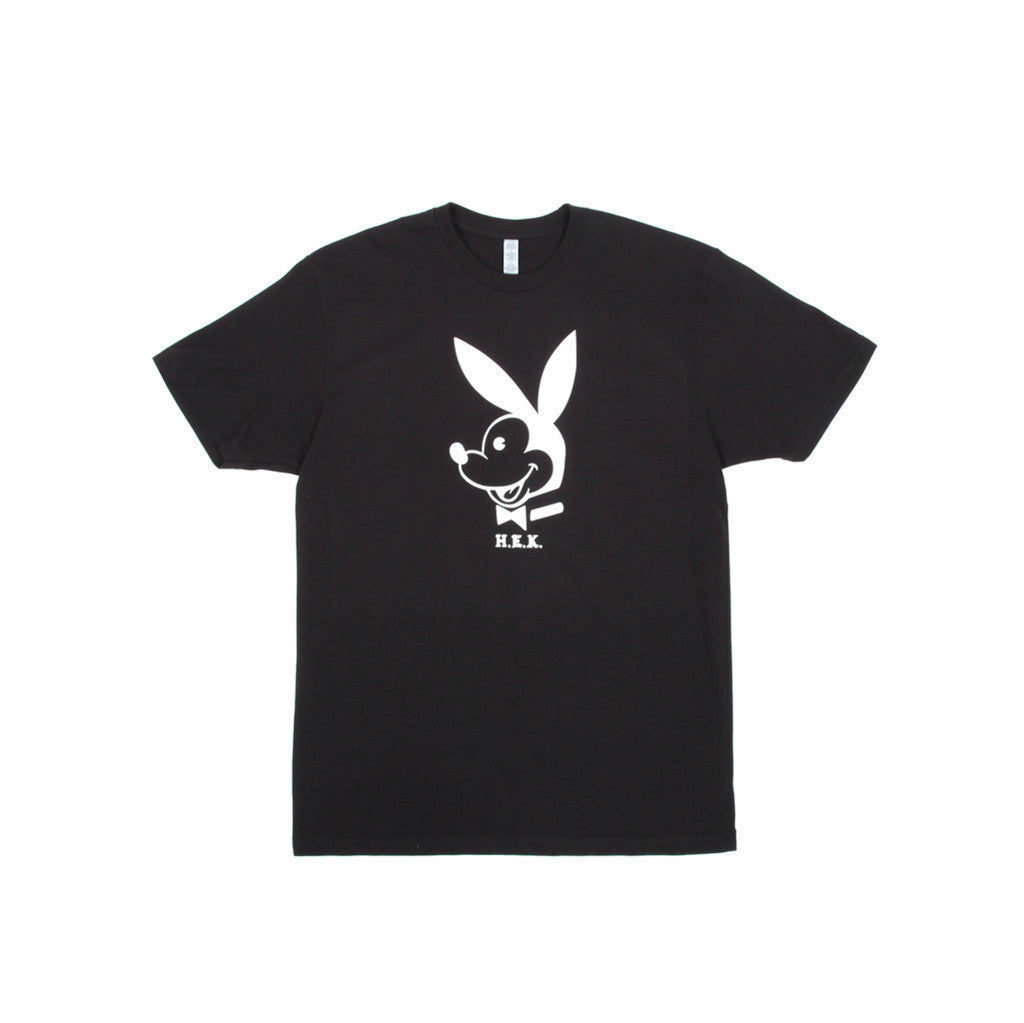 HEK "Playboy Mickey" one color print. Large chest graphic on a short sleeve T-shirt.