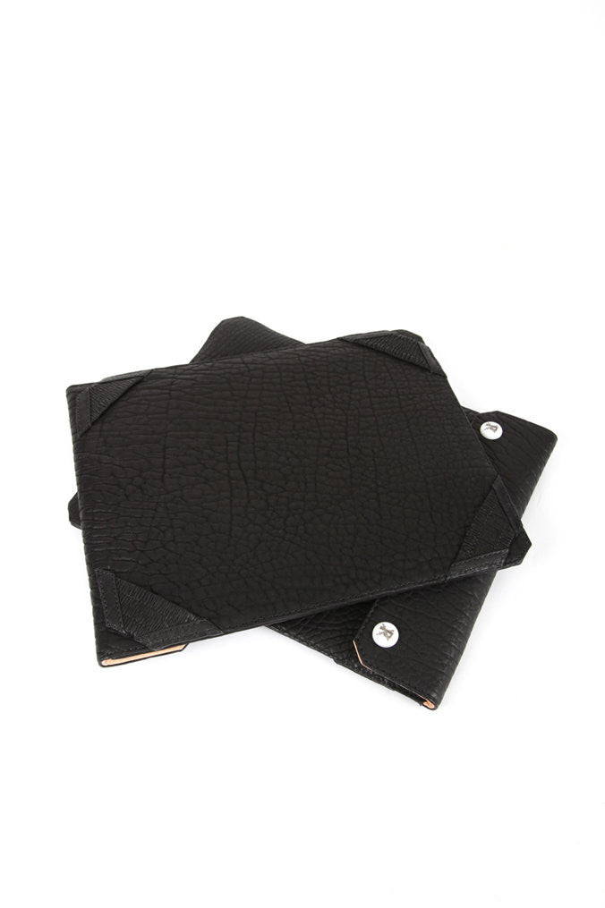 The mother of all iPad cases!! Hand stitched together Internal layer of Kevlar for strength and durability. The layer of Kevlar is sandwiched in between Reservation Bison and a vegetable tanned Calf leather lining to combat the natural stretch of the leather, and maintain the shape and size. You have the choice of either white or black, laser etched, military grade ceramic covered PRYM snap-locks.