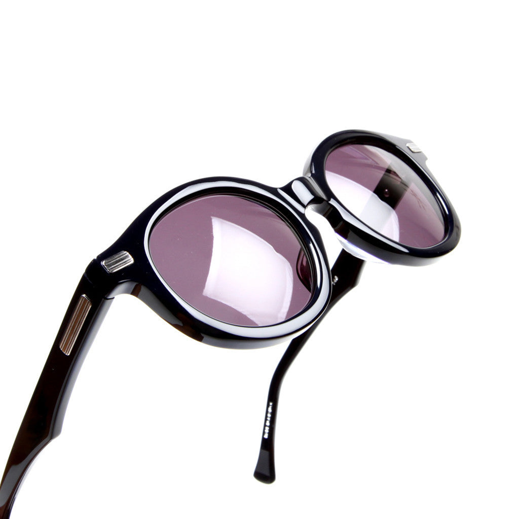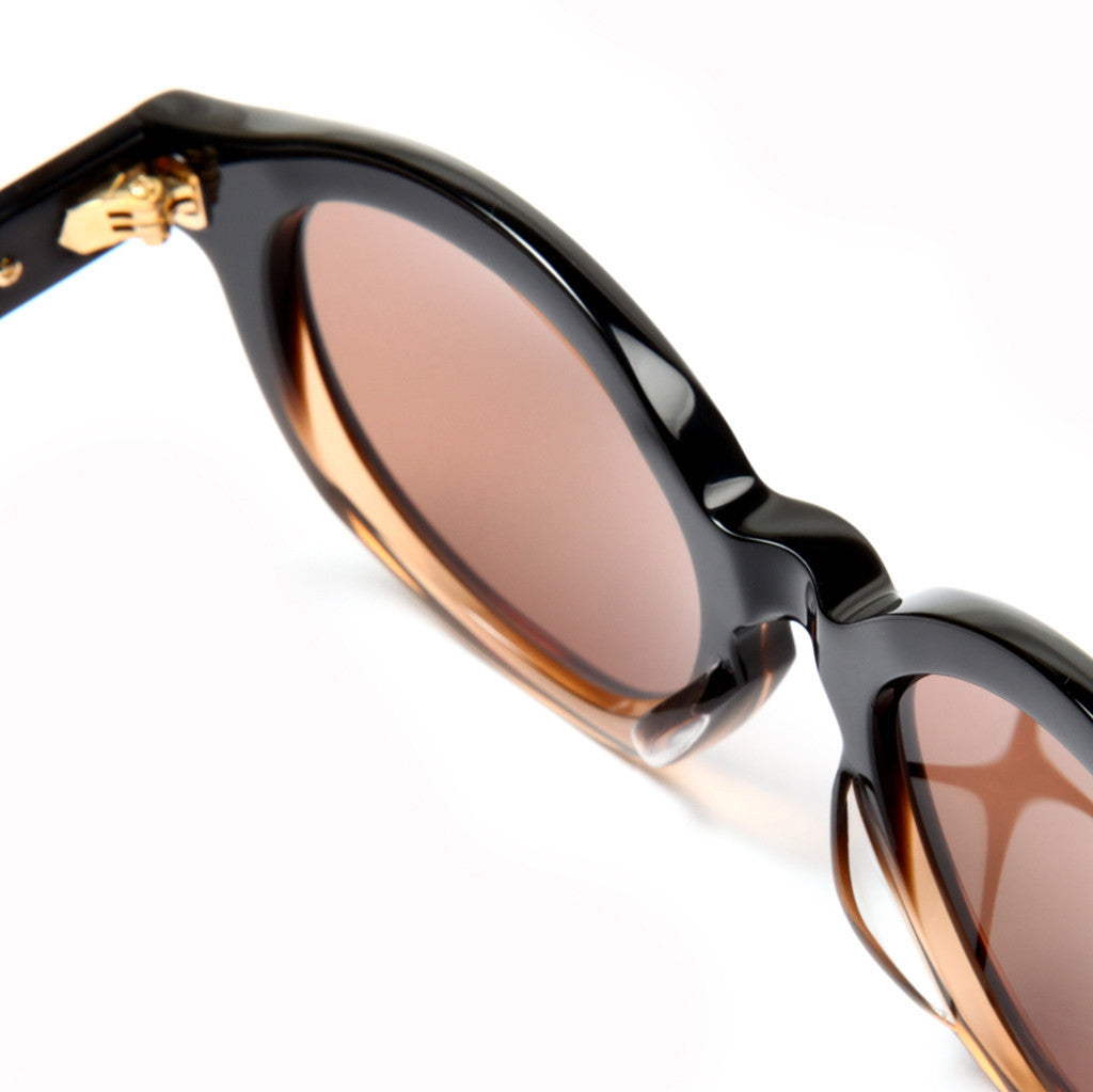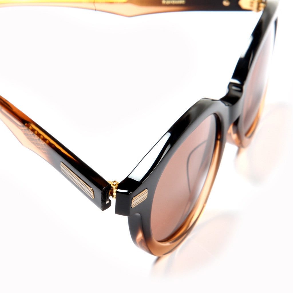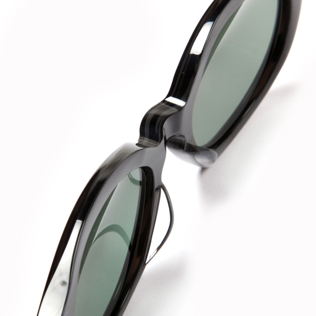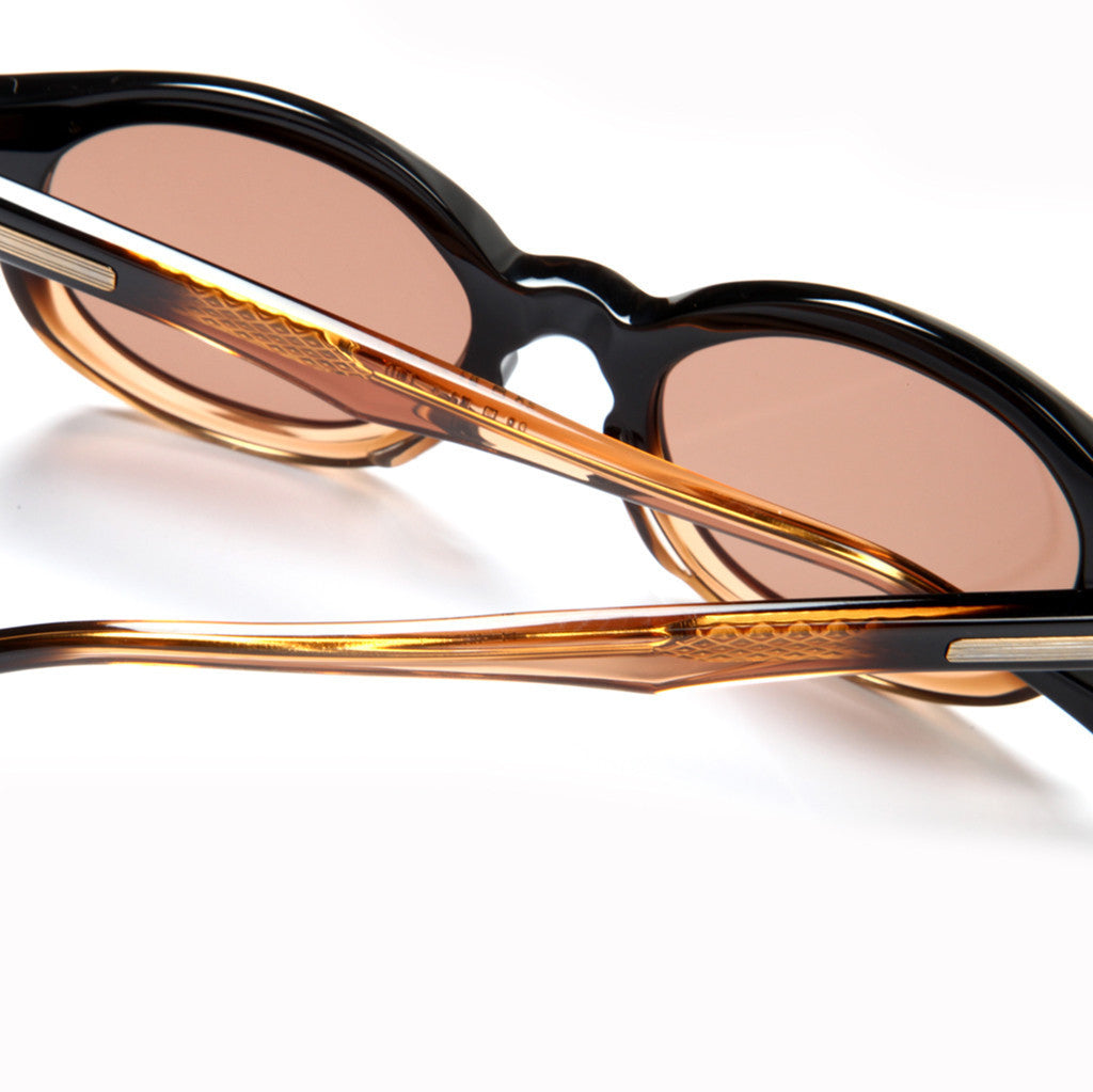 All frames are 100% hand-drawn style and original. All acetates are original cellulose (plant) based with original long-diamond-tooled core wires and original arrow-shaped hinge design and constructed using an old school star-nut configuration to adjust and hold hinge tension, making it harder to loosen. The beauty marks accenting the front connections and side temple appear striated and are finished in antique plating then hand polished to leave a hairline finish.