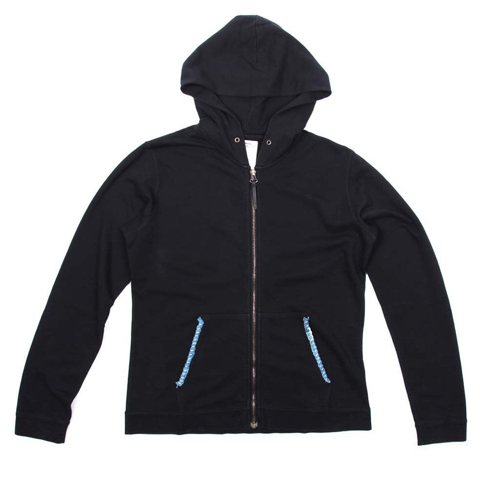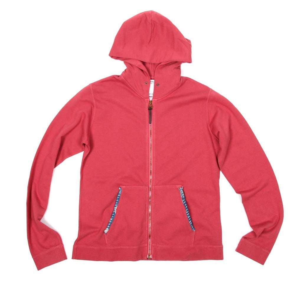 Great light weight reverse weave, garment dyed zip hoody sweat shirt in some great colors. This piece has the "kuba" detail on the pockets. The "Kuba" is a loosely stitched swatch of denim embroidered on to each side of the front pockets. This detail is something that Hiroki found in Africa where people would use old swatches of denim to patch up worn out clothing. Looks great!