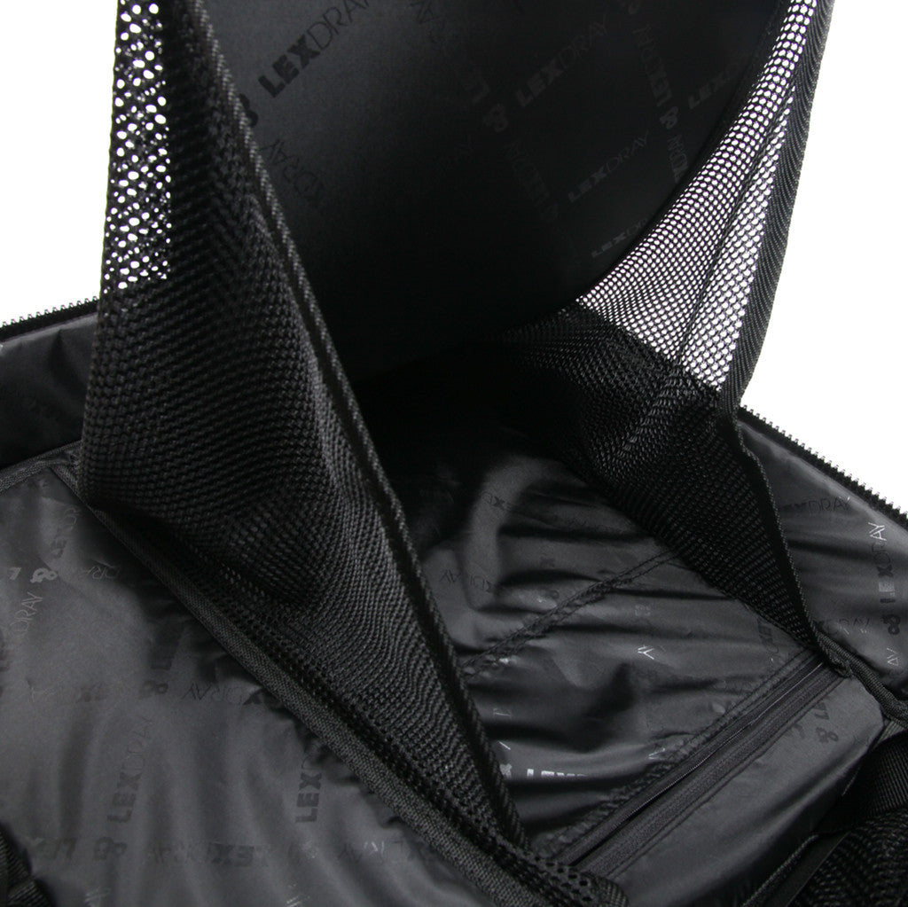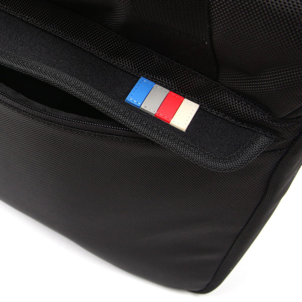 • Custom zipper pulls and printed interior nylon lining