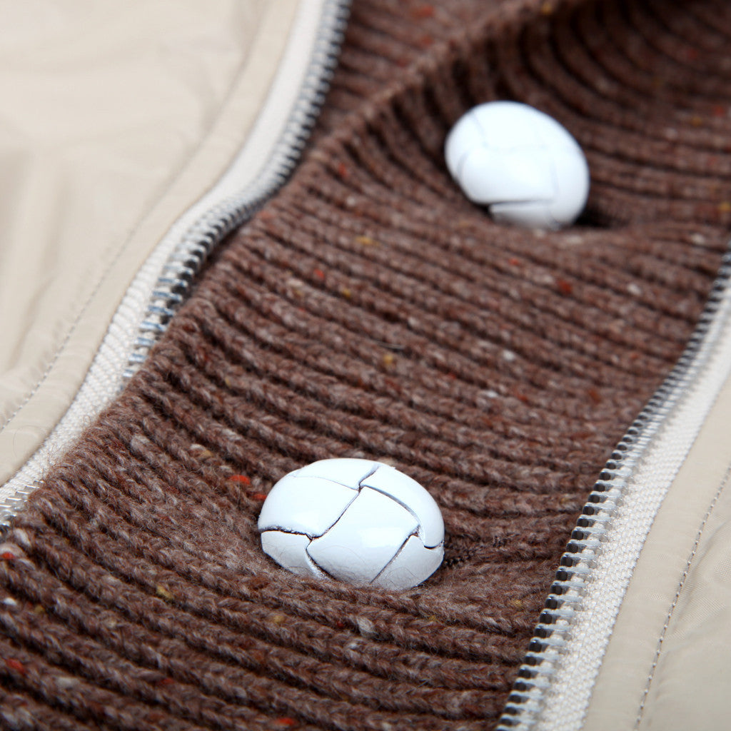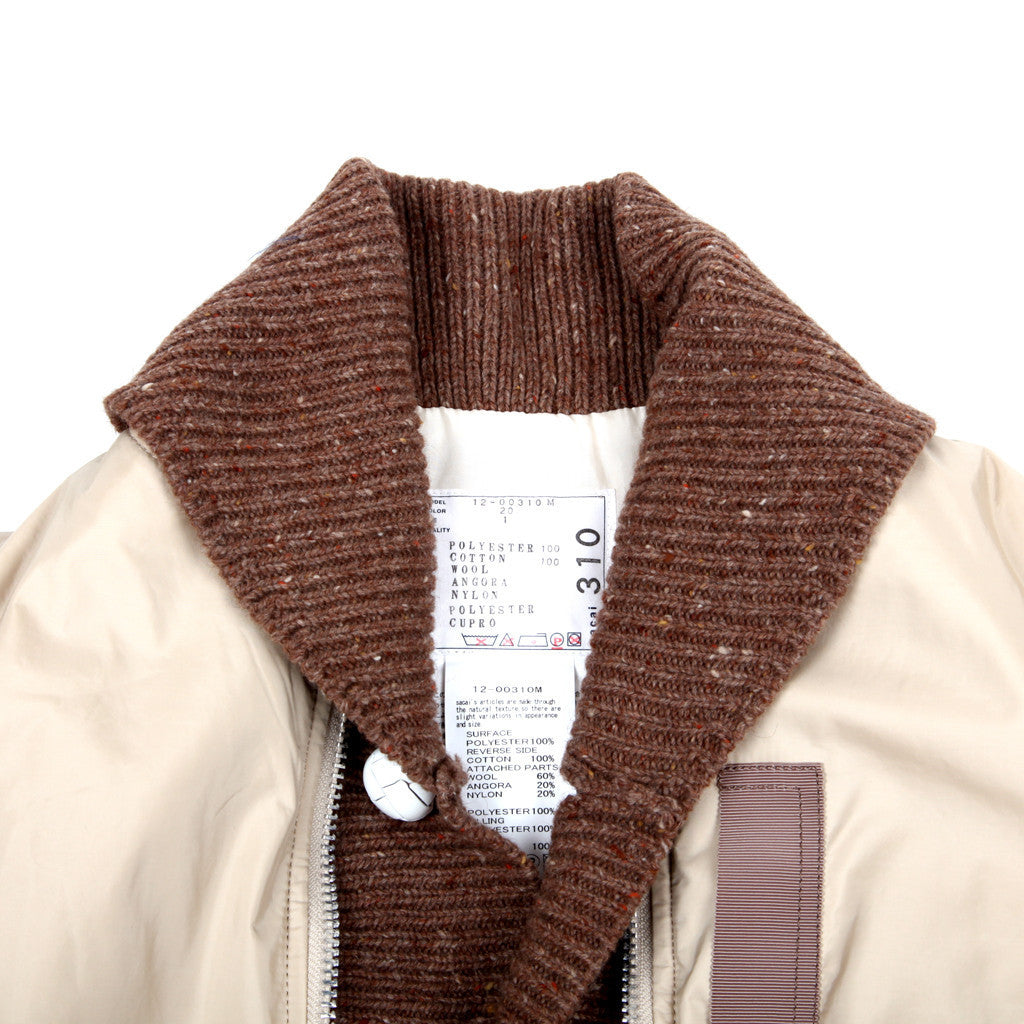 MA-1 jacket with built in Knit cardigan front placket and shawl collar. Cardigan placket can be zipped up and concealed or not.