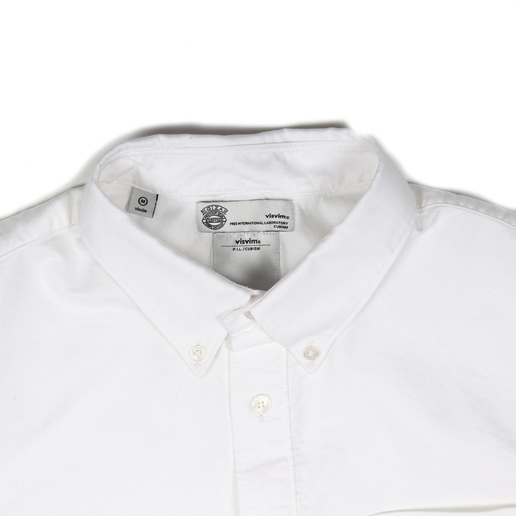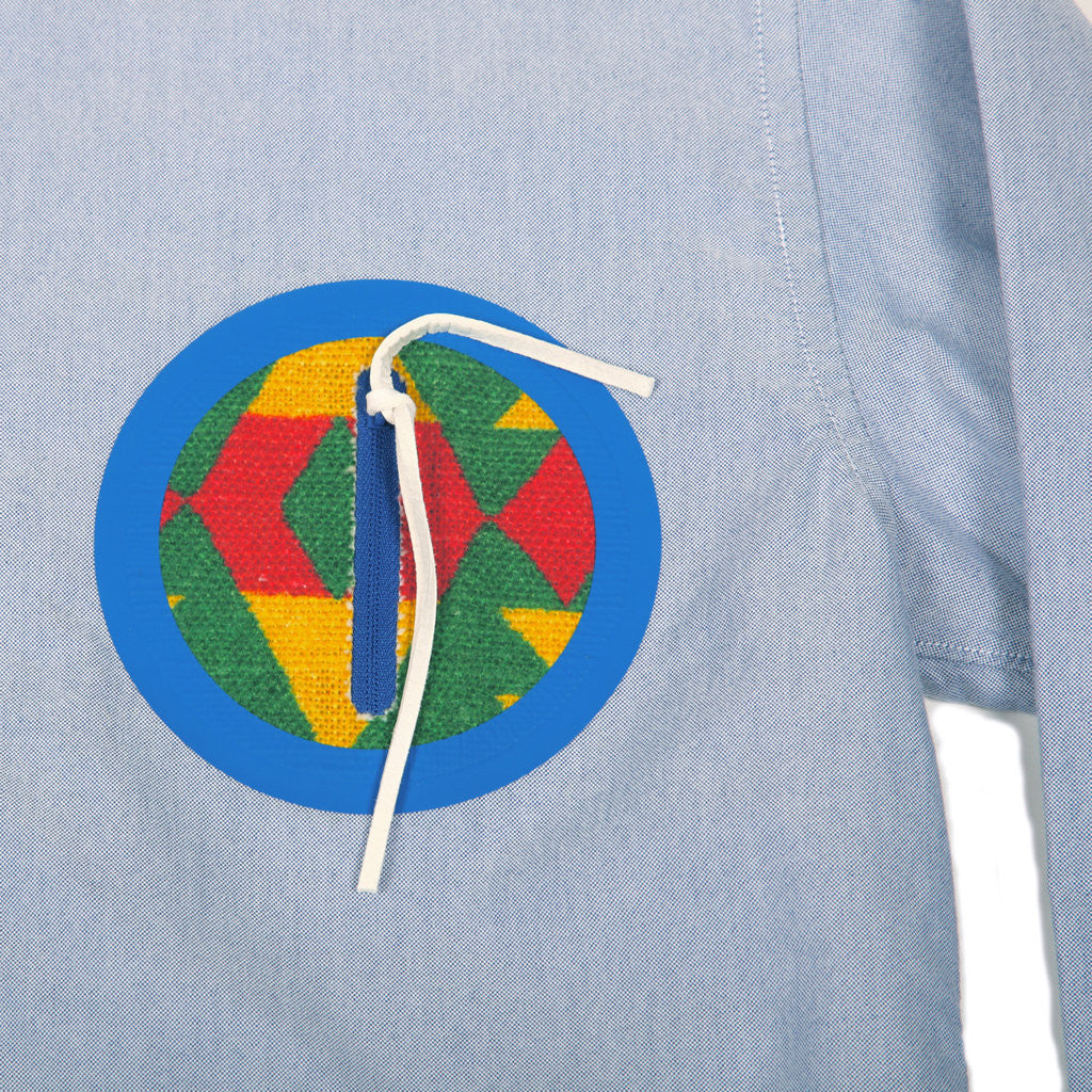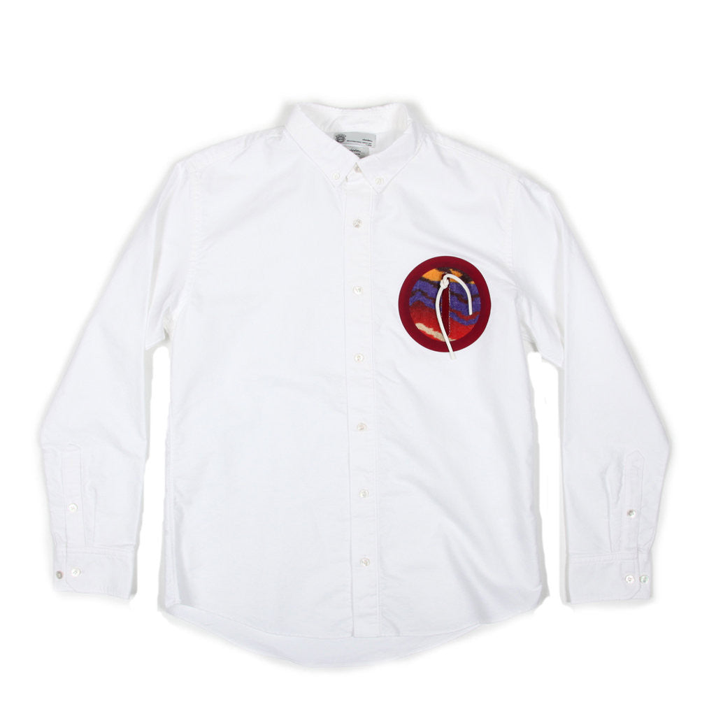 A classic oxford weld shirt from Visvim with navajo textile in the center.