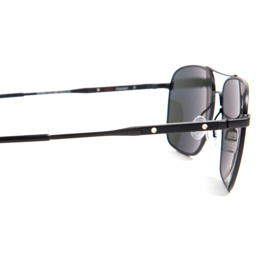TheParabellumforOliver Peoplescollaboration features a version of the Linford sunglass frame in two Limited Edition colors: Matte Black with Midnight Express Polarized glass lenses and custom Matte Black Acetate details, and Rose Gold with Java Polarized glass lenses and custom Sahara Tortoise Acetate detailing. The frames include an exclusive Parabellum breath logo positioned on each of the lenses, and true to brand's aesthetic, each pair is packaged in a beautifully handcrafted, soft Bison Leather Sunglass Case available in either Black or Pumpkin. As each piece is both one-of-a-kind and limited, the cases are stamped with a number for authenticity. The case is lined with lambskin leather, includes a custom cleaning cloth and is packaged in a protective wooden box.