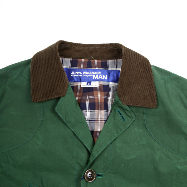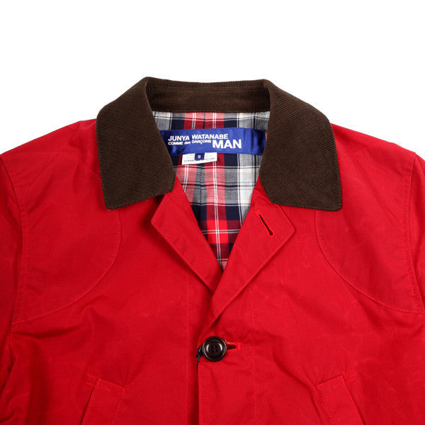 Suede trim on cuff, cord collar, and plaid lining. Has two waist pocket and mid level slant pocket.