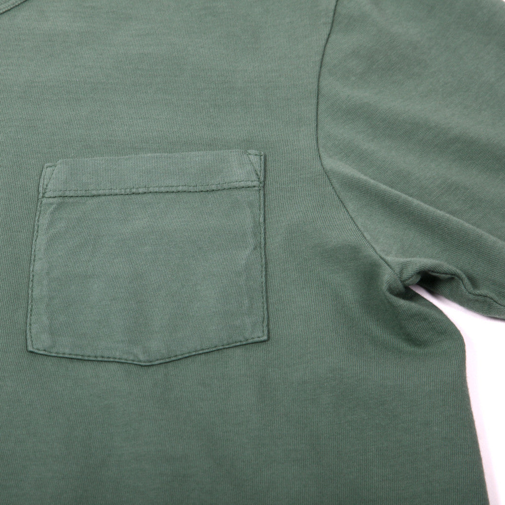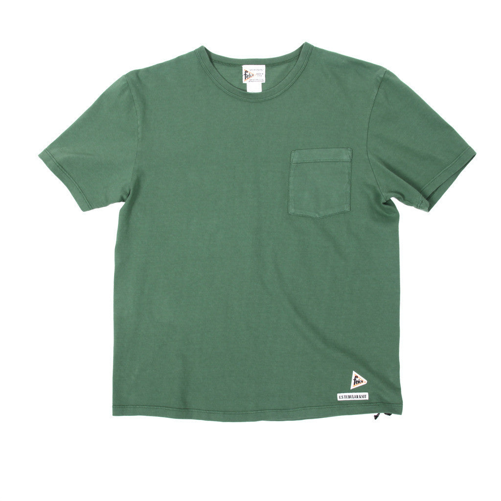 This is a very nice tubular knit pocket tee (no side seams). They're made in America on vintage circular gravity looms. They have a great hand feel and a unique semi-slub look to them.