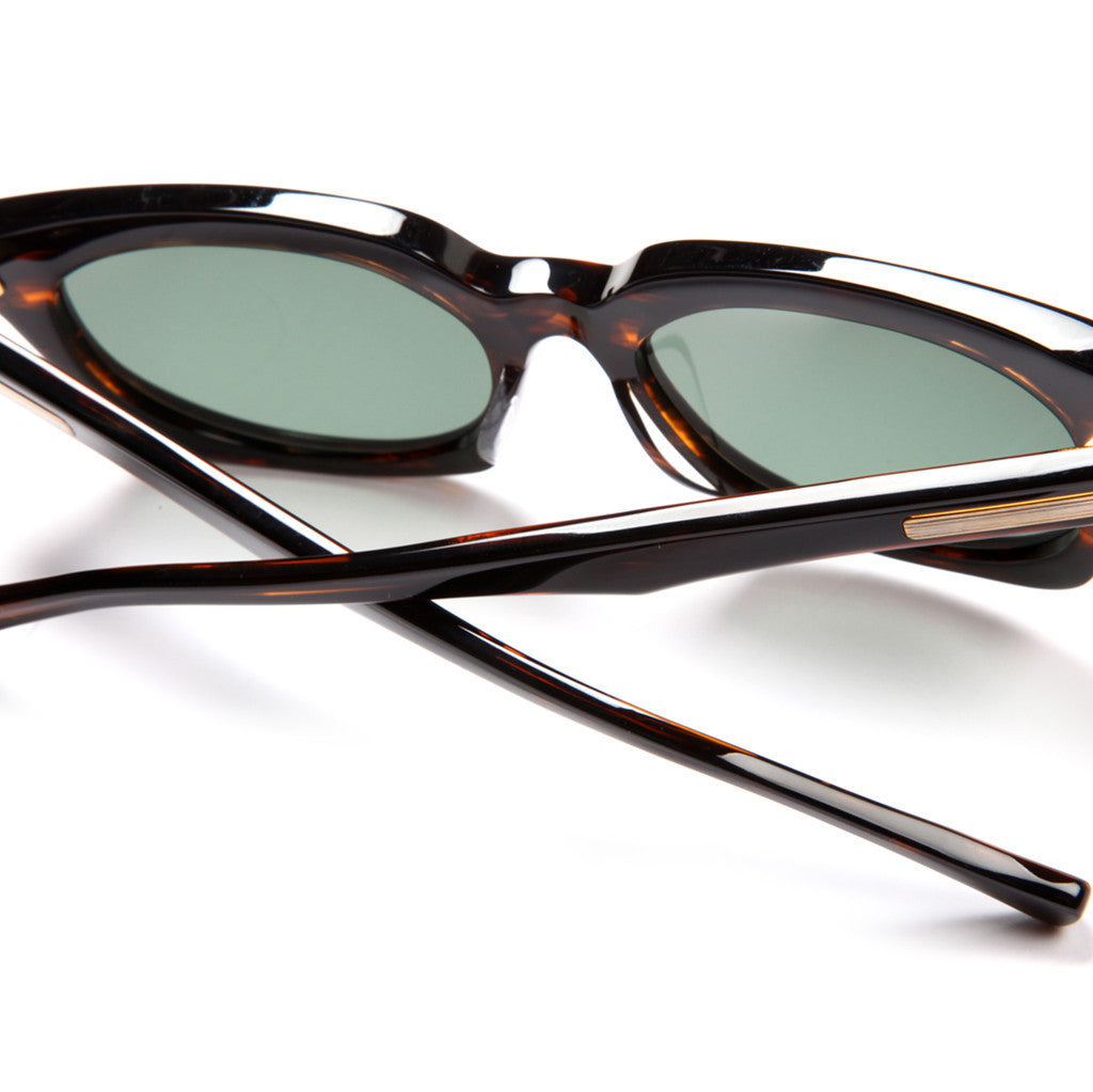 All frames are 100% hand-drawn style and original. All acetates are original cellulose (plant) based with original long-diamond-tooled core wires and original arrow-shaped hinge design and constructed using an old school star-nut configuration to adjust and hold hinge tension, making it harder to loosen. The beauty marks accenting the front connections and side temple appear striated and are finished in antique plating then hand polished to leave a hairline finish.