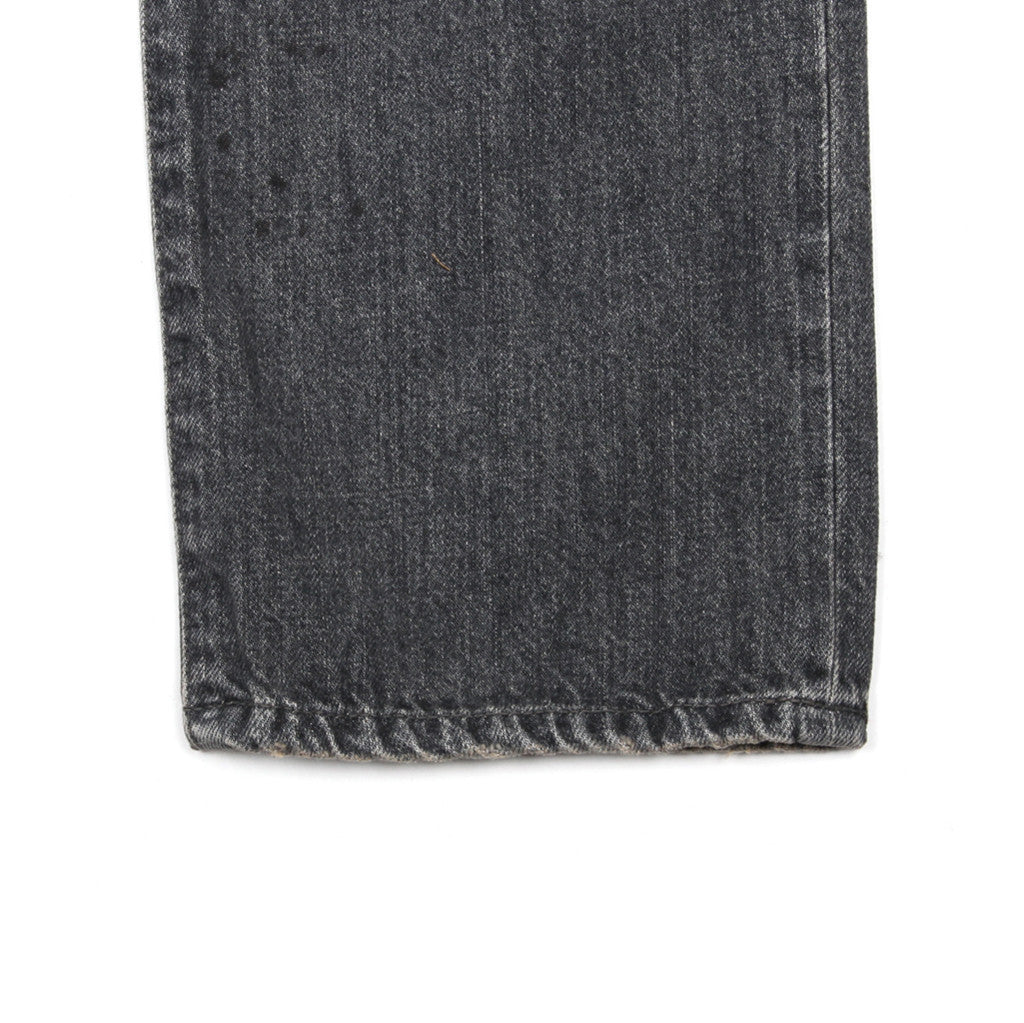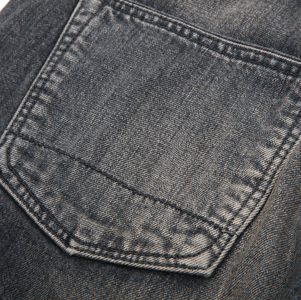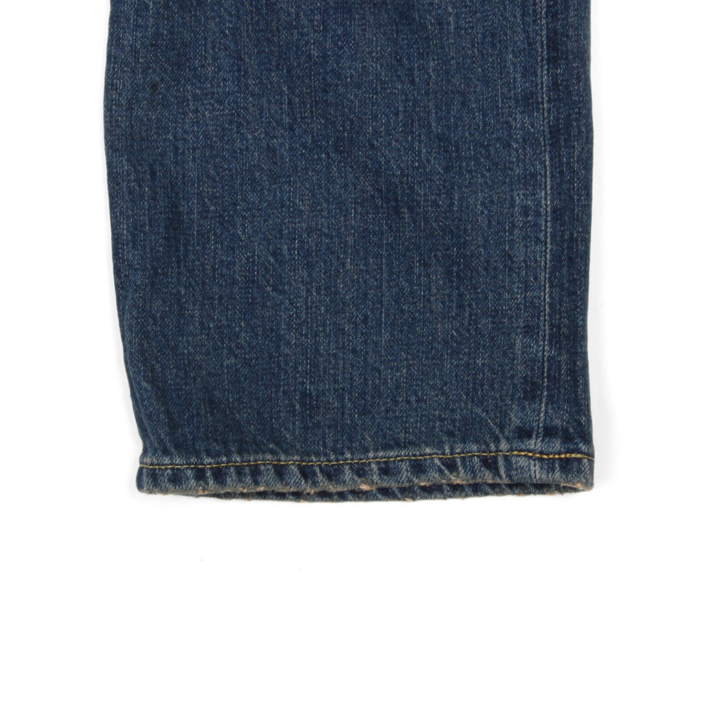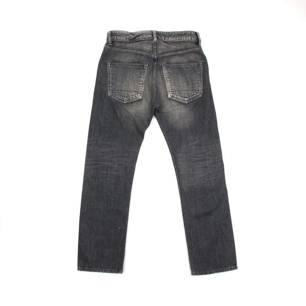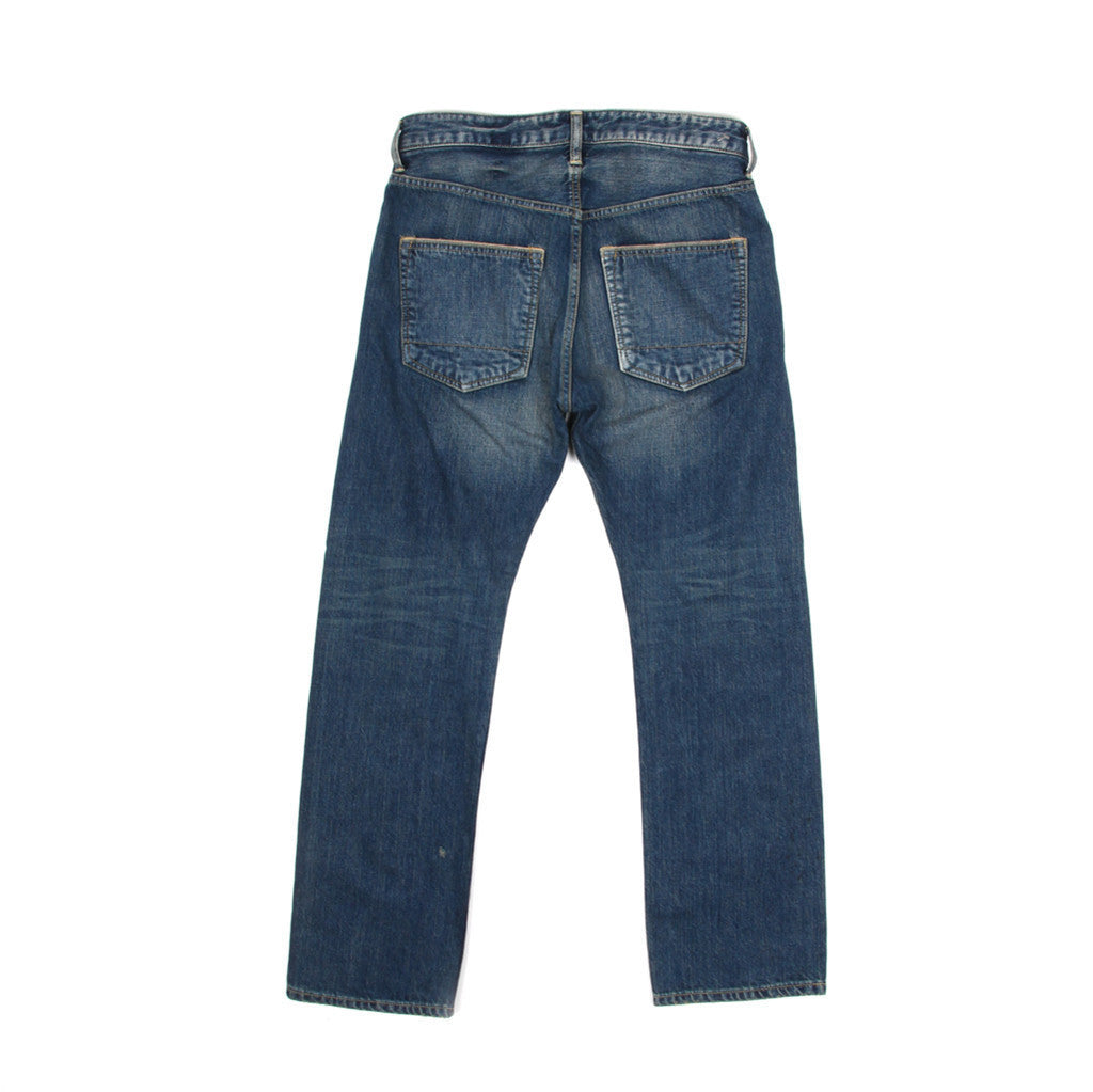 LUKER By Neighborhood is offering these tapered slim distressed and damaged denim with slanted front pockets and corduroy waistband lining.
