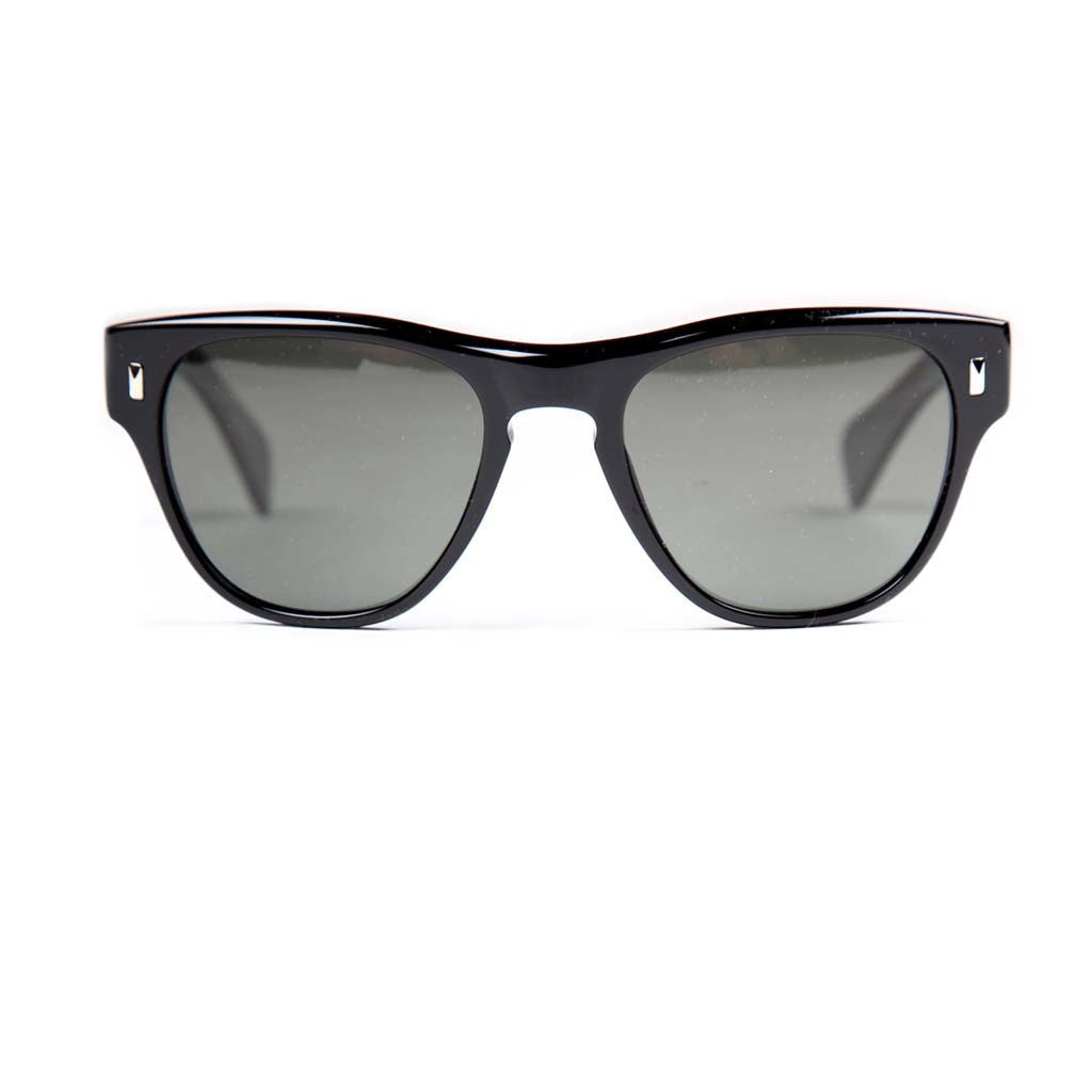 Retro-inspired sunglass handcrafted of voluminous beveled plastic. The unisex style features a vintage-inspired keyhole bridge and authentic silver vertical plaques on the frame front. The discreet but recognizable Oliver Peoples logo plaque is laminated at the temple end.