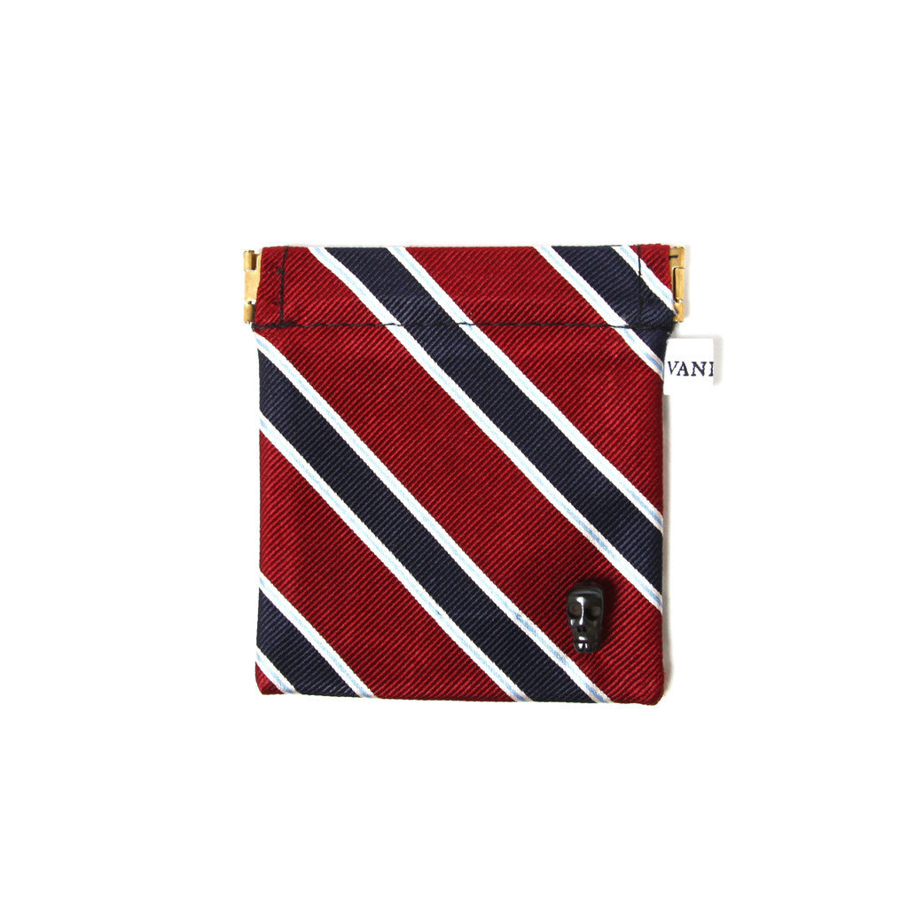 A silk coin pouch with bendable push side snap opening and beaded skull detail.
