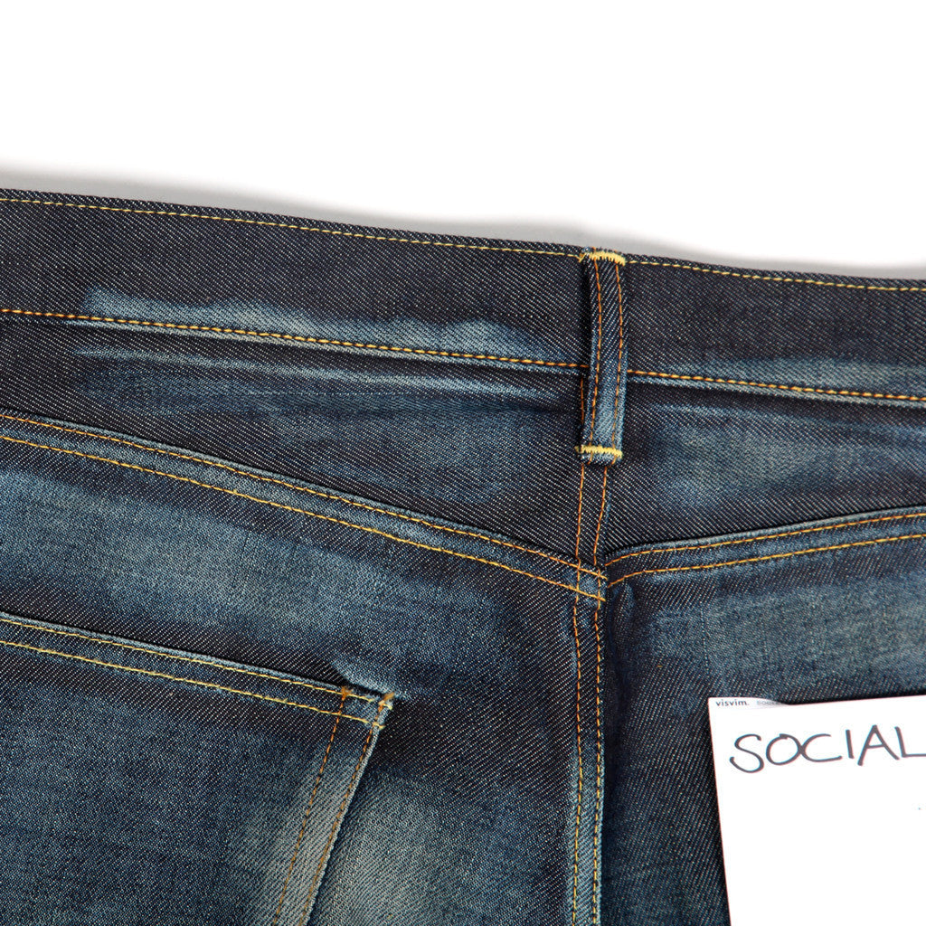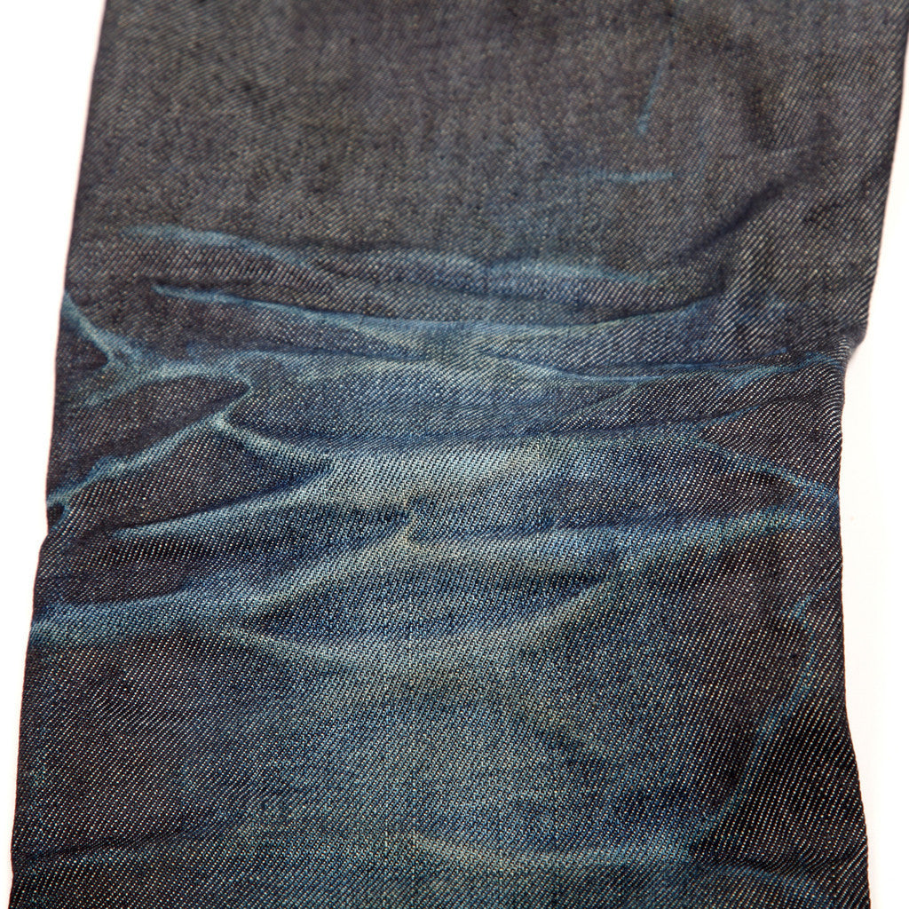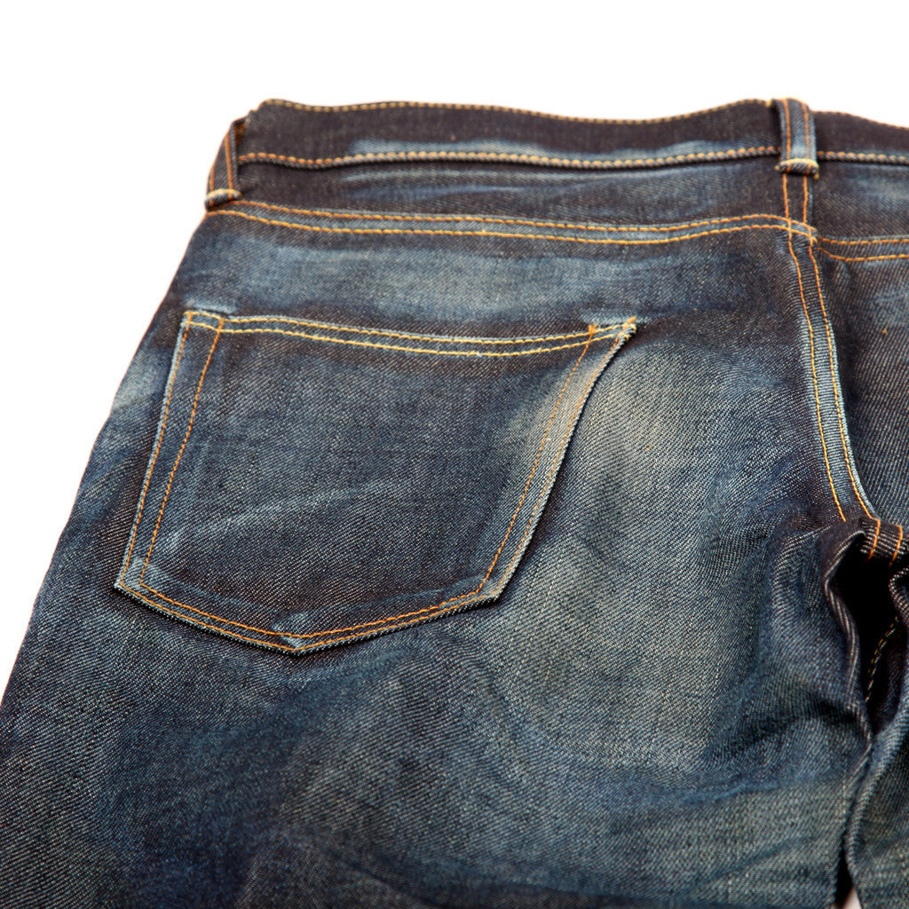 A beautiful pair of denim. It is in between a unwashed and a washed. Not to stiff yet not to soft. Has a custom selvedge waist band and a hidden zip interior back pocket.
