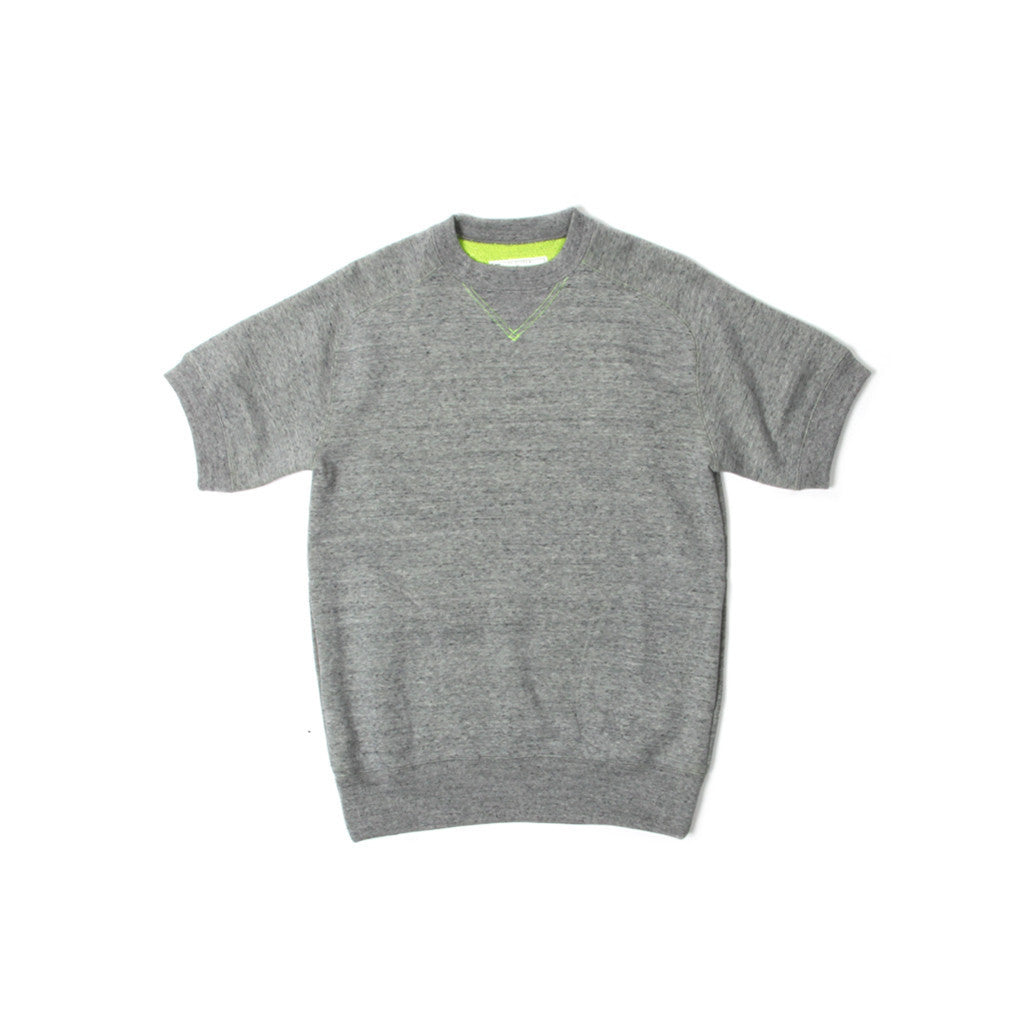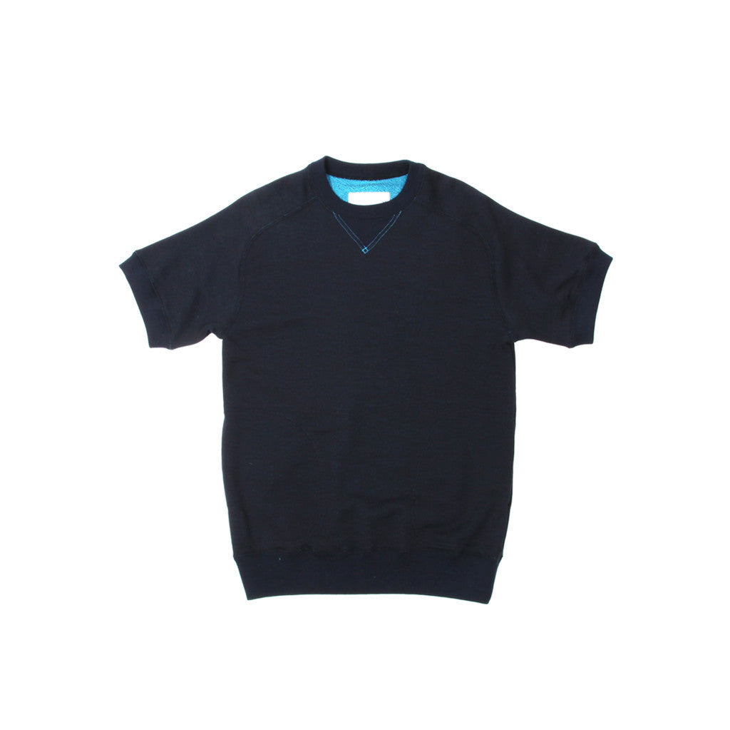 Short sleeve french terry crew neck sweatshirt with contrast inside color.