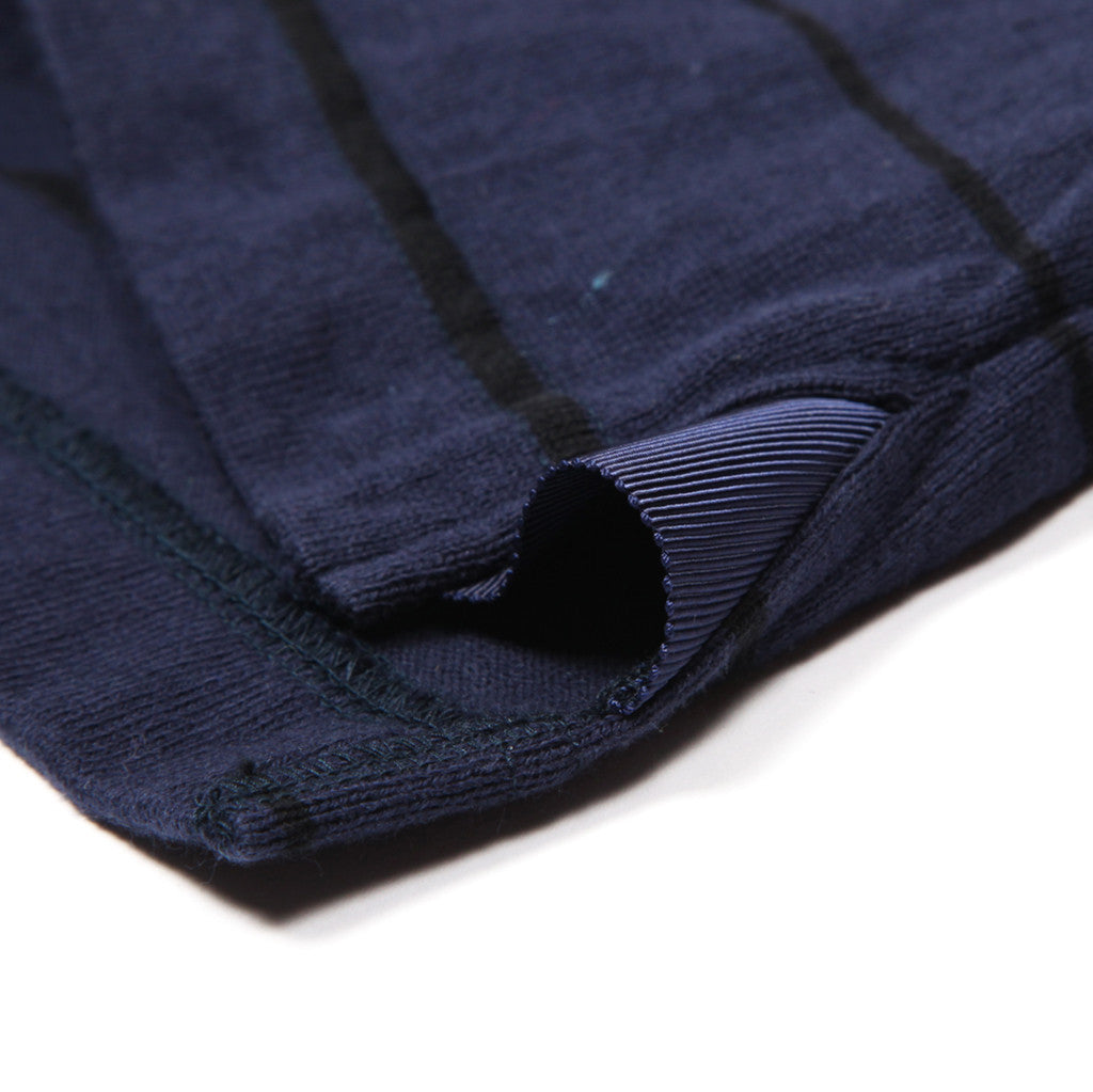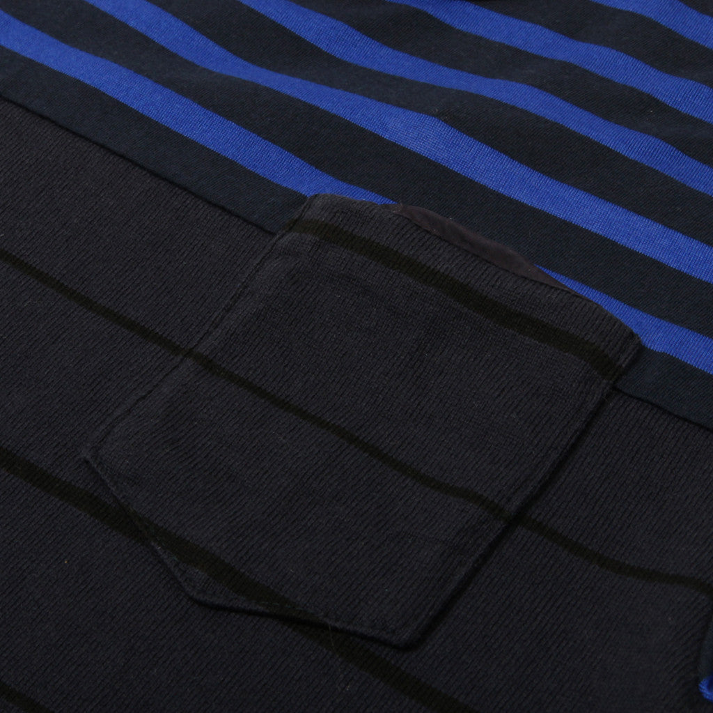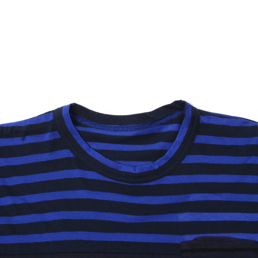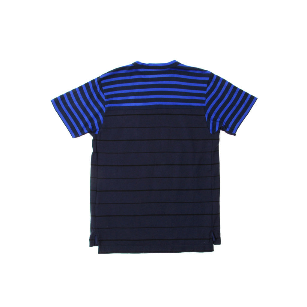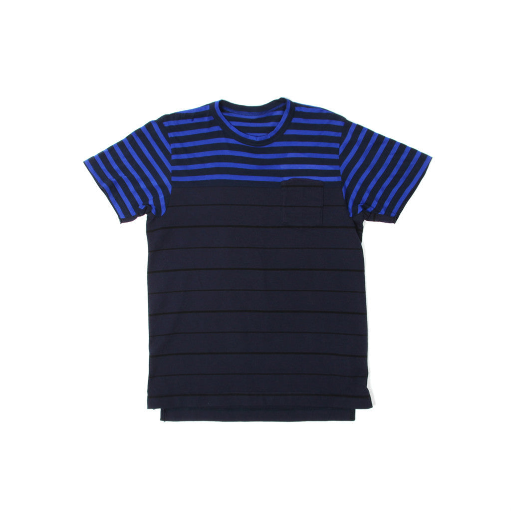 Short sleeve cotton tee with contrast stripe panels and single chest pocket. Also with side seam gusset grosgrain detail.
