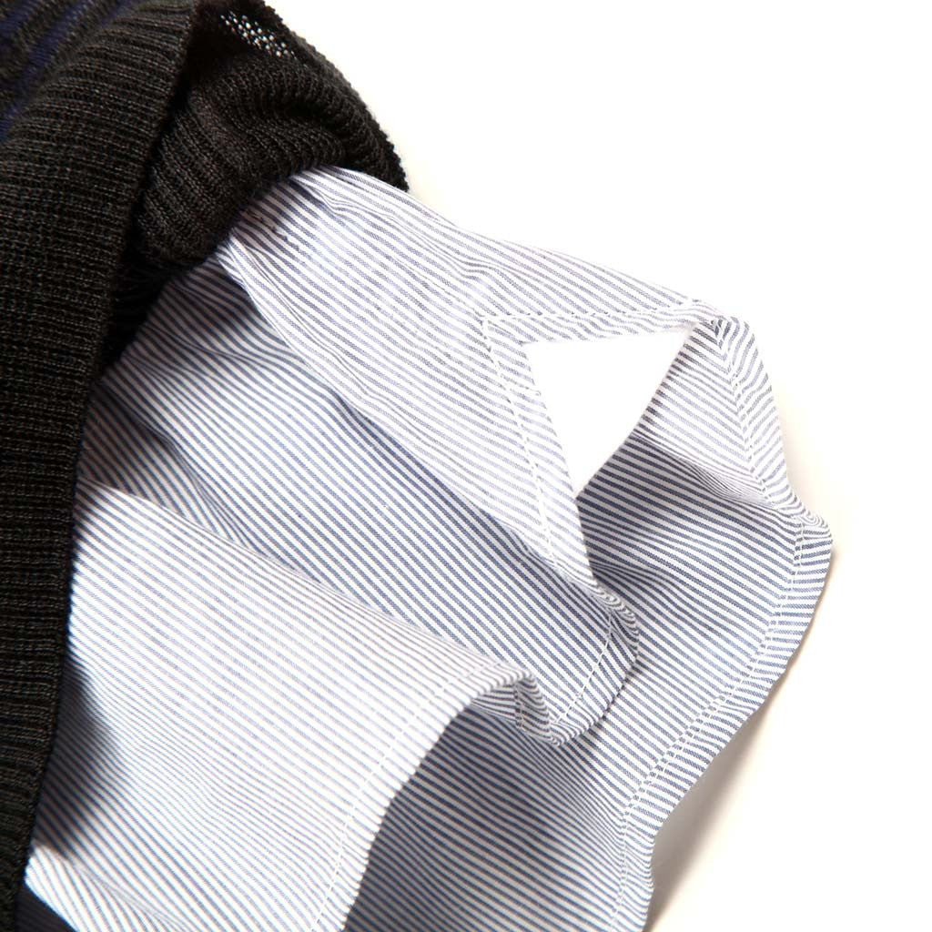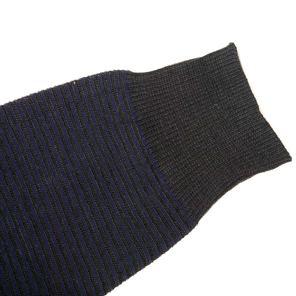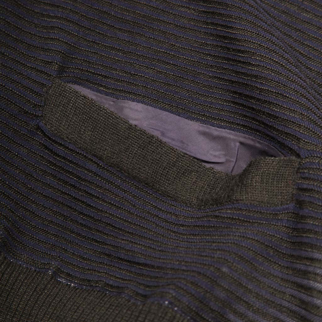 Light weight cardigan with satin lined pockets. Stripe is created by the varied density of the knit. Other details include shirt tails attached to the bottom that hang out under the sweater.