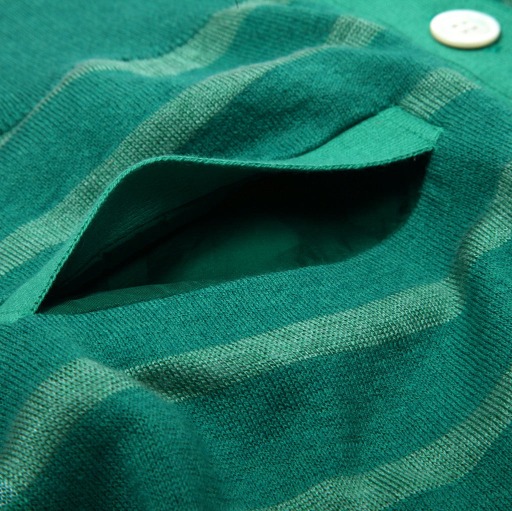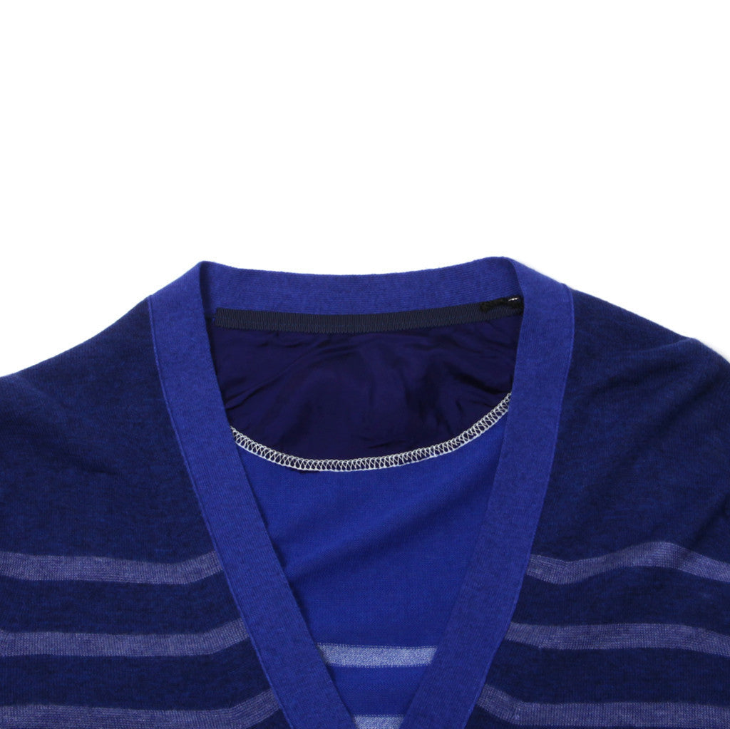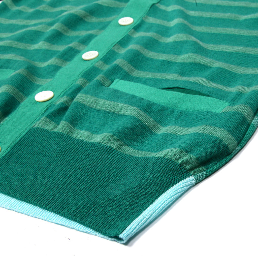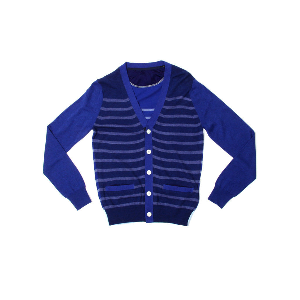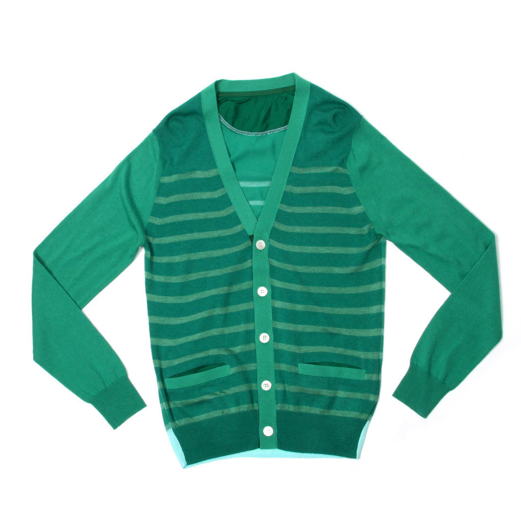 Thin knit striped cardigan with contrast sleeves, hem and back panel.