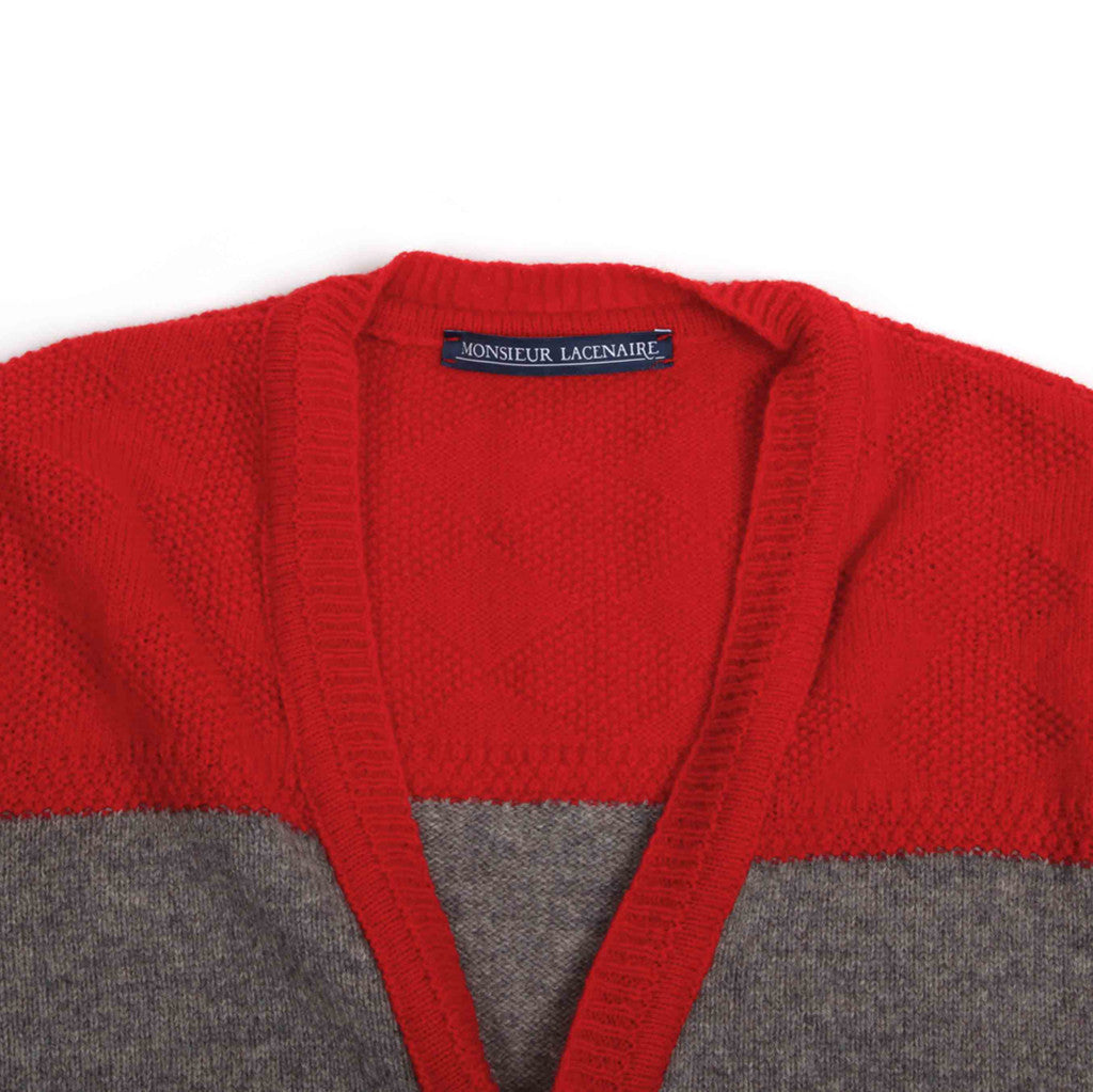 A color block cardigan made of merino wool. Ribbed trim, V-neckline, and contrast buttons. Classic and understated...