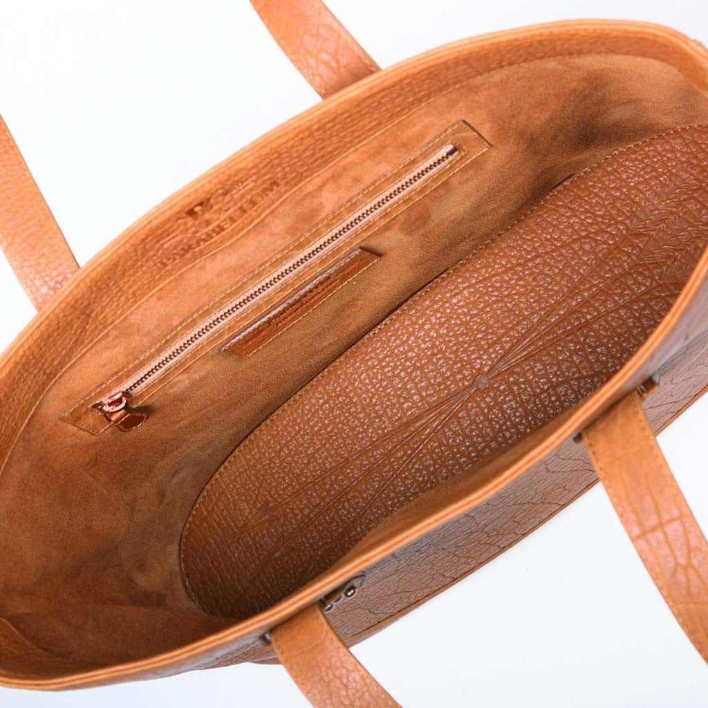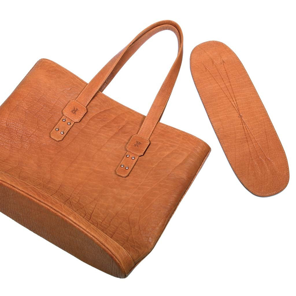 Removable hard bound leather base for rigidity or remove for a more collapsable bag