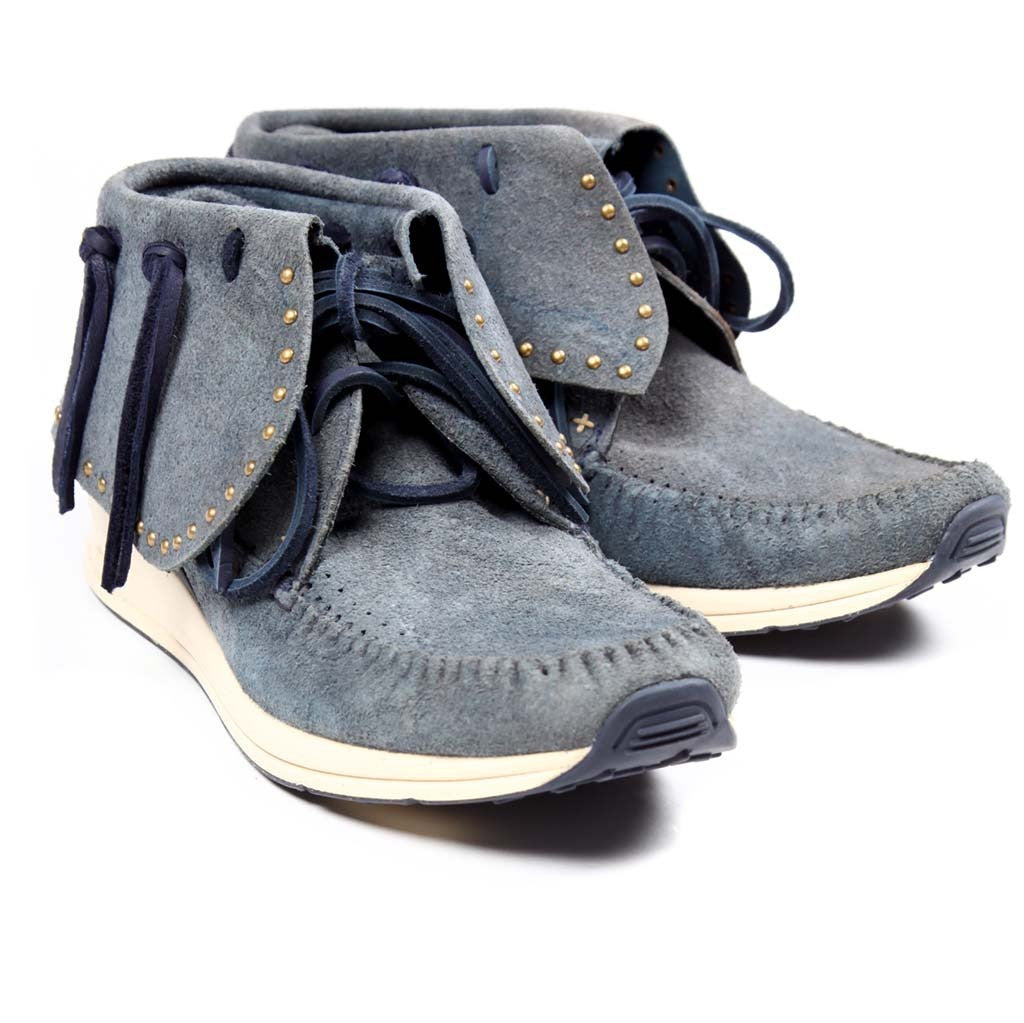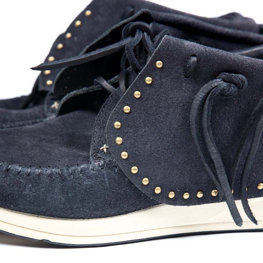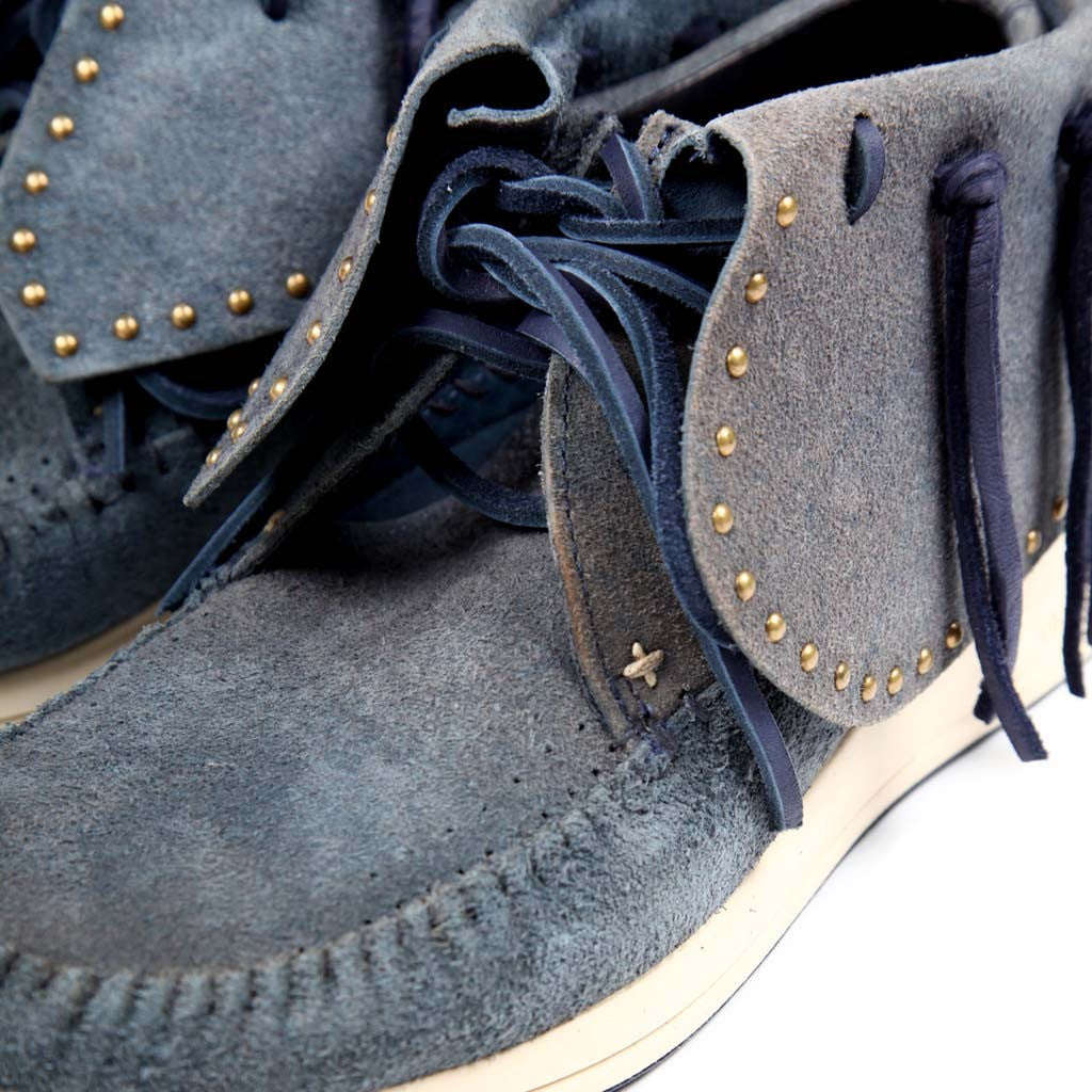 One of Visvim most iconic footwear model. This time, reworked with an amazing suede contruction and custom Visvim Vibram sole which you can now get resoled once they have worn out. Detailed with antique copper studs.
